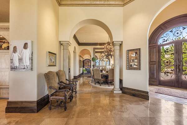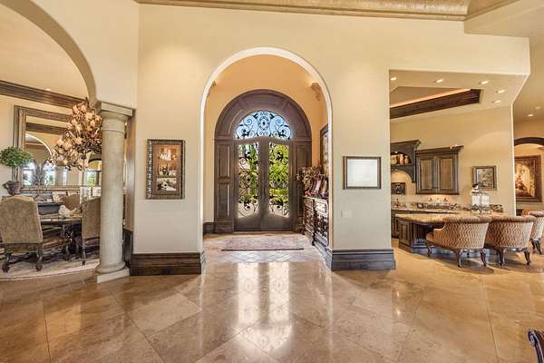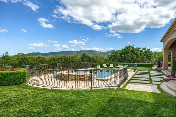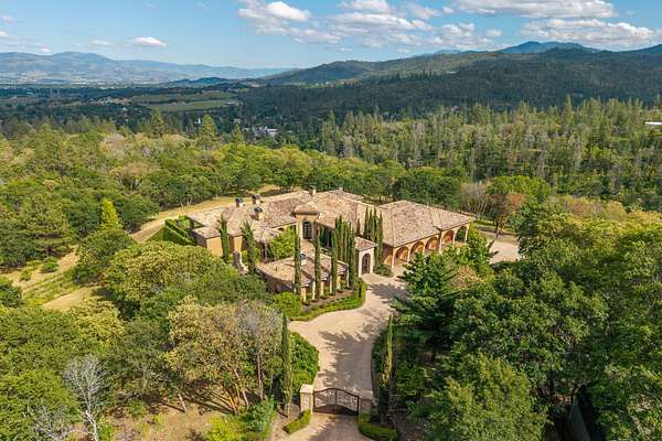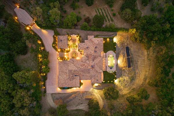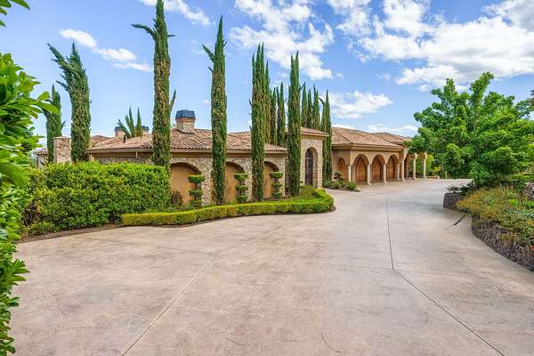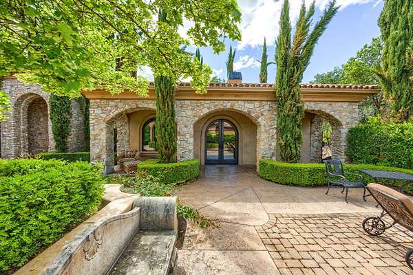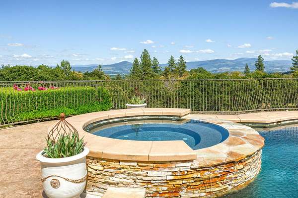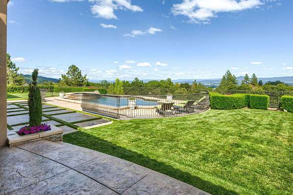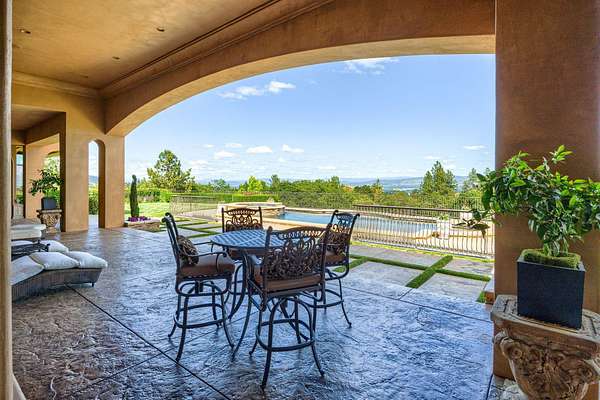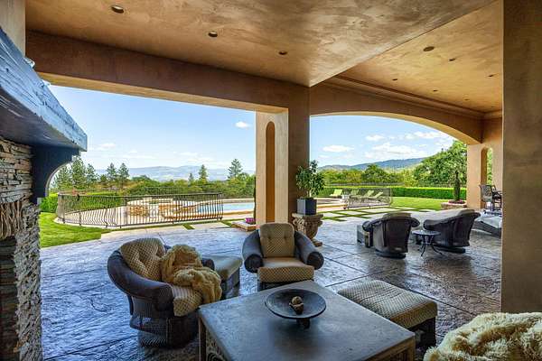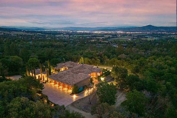 Masterpiece of Art in Southern Oregon, 1st time on the market! Overlooking Jacksonville Mts and City lights! Private park-like 5 acres w/city water! Mediterranean/Old world style w/stone gated entry. 12 car garage. 9904 SQ FT of luxury. Attention to details throughout this amazing property. 4 primary suites, 6 baths, Pebble tec pool and spa, covered patios w/stone fireplace, gated courtyard w/large fountain and guest Casita! Fall in love; 13' double door entry that takes you into a grand great room w/many 9' French doors opening to the outdoor living room, 8 fireplaces and dome ceilings. Large stone fireplace in kitchen/breakfast room. Beautiful kitchen that any chef would love w/butler pantry and catering area w/third sink and wine fridge. Primary suites w/custom tall ceilings. Tuscan Villa with a 12 car garage, elegant formal dining rm with built-ins. Downstairs family, theater and exercise rms. Built & architecturally designed by Mike Pagnini a premier builder in Southern Oregon.