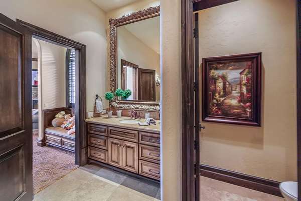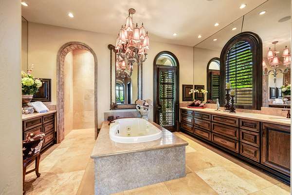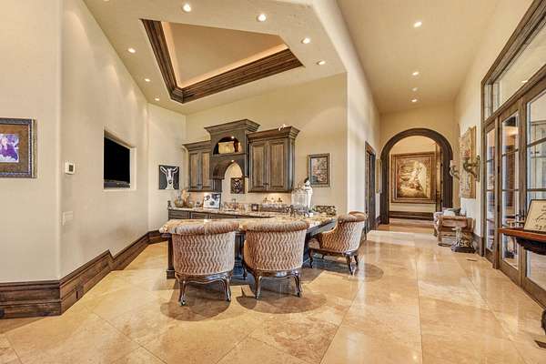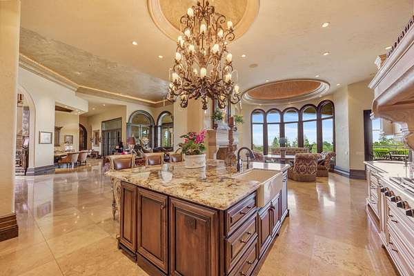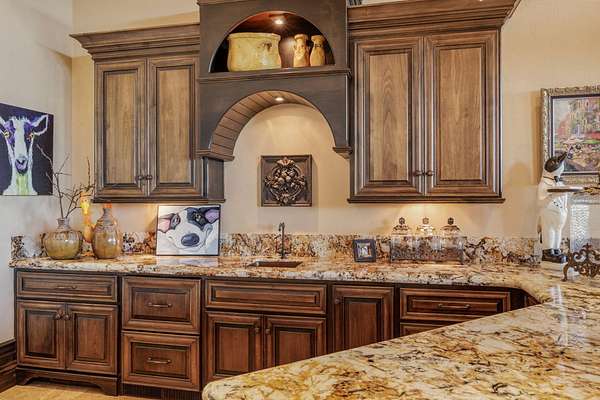 - Breakfast Bar, Built-In Features, Central Vacuum, Double Vanity, Enclosed Toilet(s), Granite Counters, Kitchen Island, Linen Closet, Open Floorplan, Pantry, Solid Surface Counters, Stone Counters, Tile Counters, Tile Shower, Vaulted Ceiling(s), Walk-In Closet(s), Wet Bar, Wired For Sound