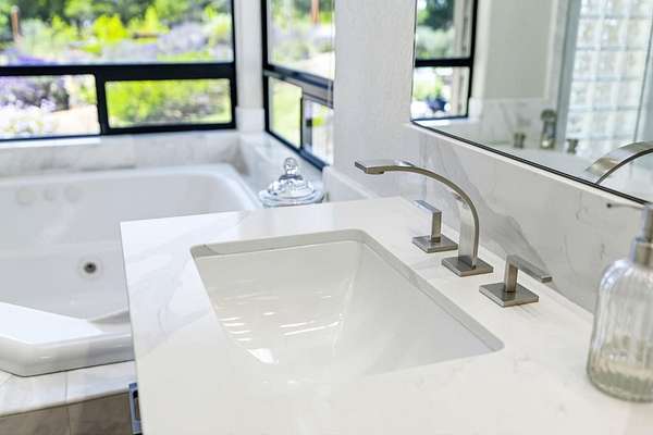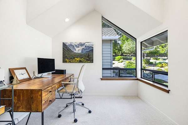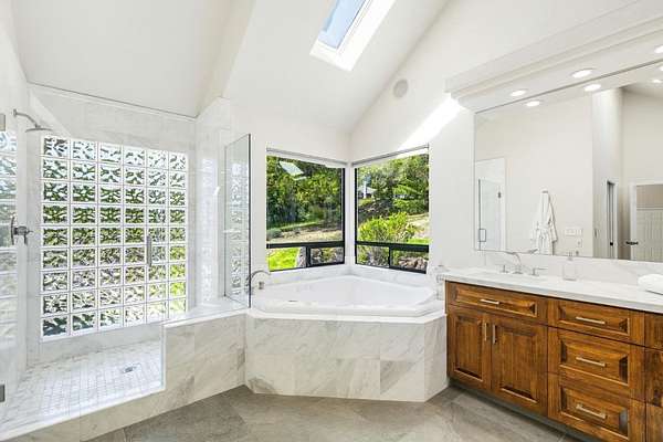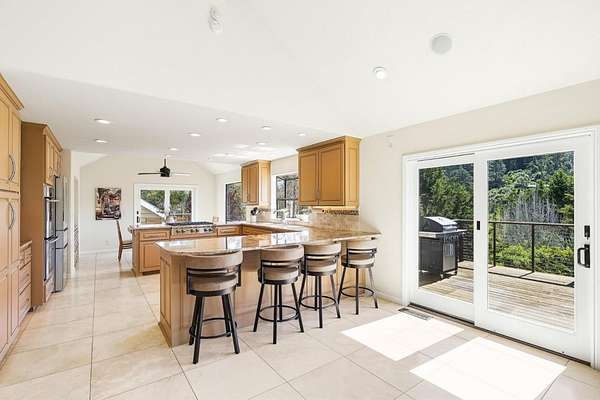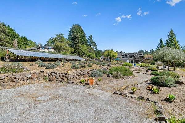 Tucked away in the serene Forest & Meadows community, this beautifully updated home sits on 1.5 acres of privacy, tranquility, and sunlight. As you enter through the custom wood front door, you're greeted by vaulted ceilings, travertine tile, and natural light pouring in through expansive picture windows, drawing your eye to the backyard. The main living areas offer a seamless flow into a variety of spaces designed for both everyday living and entertaining. To the left, the kitchen features a Wolf range and opens to a spacious deck, while the opposite wing showcases a media room with gas fireplace, custom wet bar with beer tap and wine fridge, and built-in cabinetry. Outside, stonework terraces create multiple areas for entertaining alongside a bocce court, grass lawn, rows of lavender, rose gardens, fruit-bearing vines, and raised planter beds evoking the feel of a private retreat at home. The primary suite features dual skylights, walk-in closets, gas fireplace, and an ensuite bath with radiant heated floors, walk-in shower, soaking tub, and garden views. A private deck off the suite offers direct access to the backyard. Additional highlights include a 44-speaker indoor/outdoor sound system, EV-ready three-car garage, and ADU potential. This is Aptos living at its absolute best