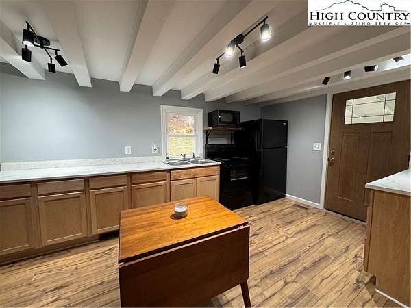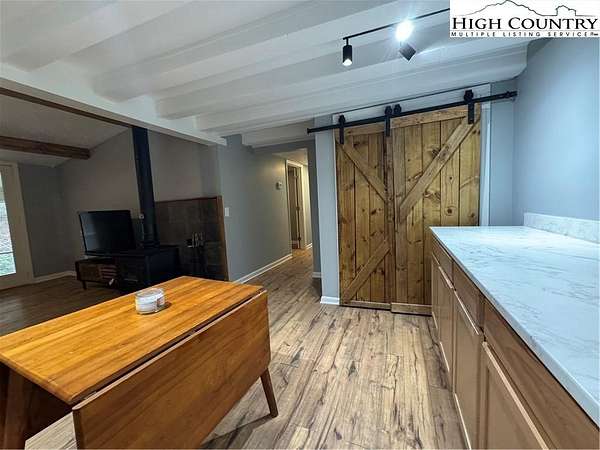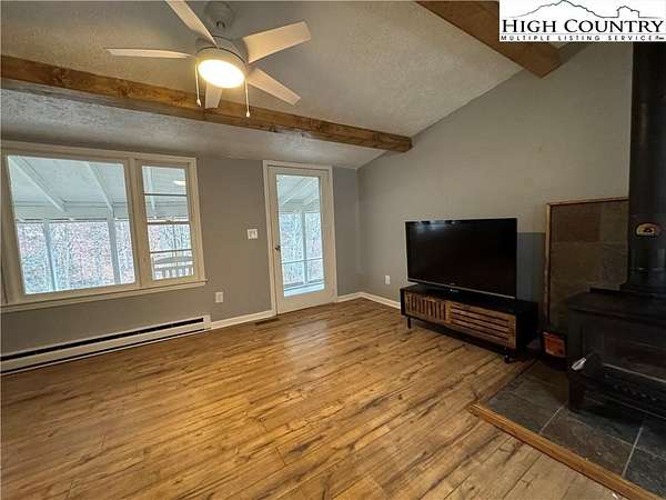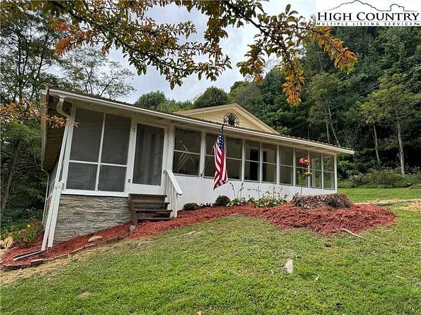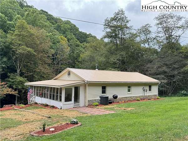 Tucked into an enchanted setting overlooking a babbling creek, this refreshed mountain cottage blends rustic charm with modern updates. Set on approximately 1.6 acres, the home features a large open lawn, fire pit area, and a screened-in deck where you can relax to the sounds of flowing water. The living room offers a wood-burning stove with glass front--perfect for cool mountain nights--while recent upgrades include: new metal roof (2021), central heat and air via new heat pump (2022), new kitchen cabinetry, fixtures, and LED lighting, fresh paint and laminate flooring throughout, driveway improvements, new gutters, and landscaping and stone accents for added curb appeal. The home is sold with exisitng furnishings, great starter options for an investment property either as a long or short-term rental, seasonal getaway, or private retreat. A sunny, open spot is perfect for gardening, and high-speed fiber optic internet keeps you connected. Property has more than 290' feet of frontage on Skin Camp Creek with wonderful babbling, cool, cascading water mountain creek. Located just minutes from the New River, historic Todd, and within a 30-minute drive to Boone or West Jefferson, this property offers both seclusion and convenience. The cottage is surrounded by larger wooded tracts--ideal for privacy, stargazing, and enjoying nature. No deed restrictions. Within a short drive to Three Top Mountain State Gamelands and Elk Knob State Park. A 3-bedroom septic permit for a new system has already been obtained. (Current system functions as intended but may not support full-time use per plumber.) While county records list the build year as 1974, utility records and construction style suggest the original home dates to around 1948, with updates and additions over time. Listing Agent is not owner, but both owners are licensed NC Real Estate Agents.