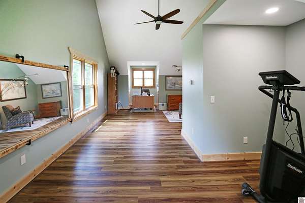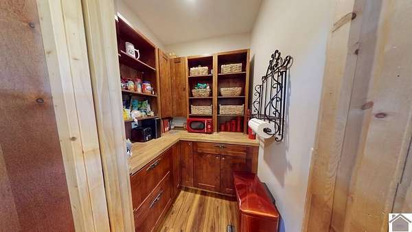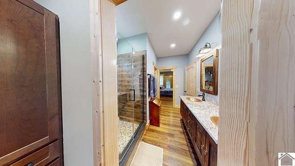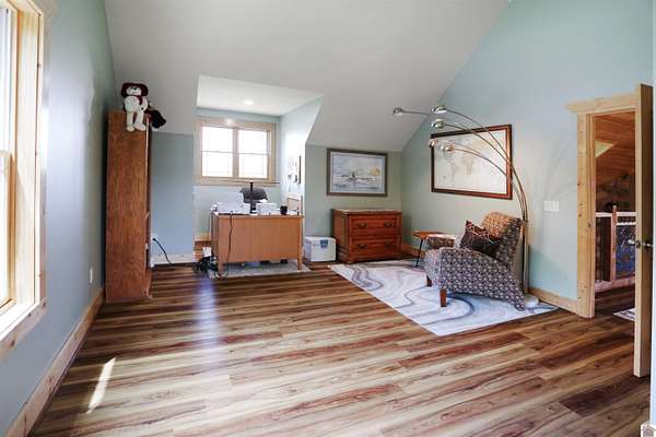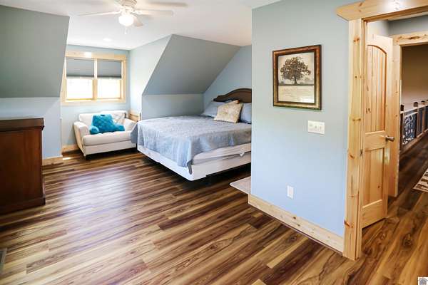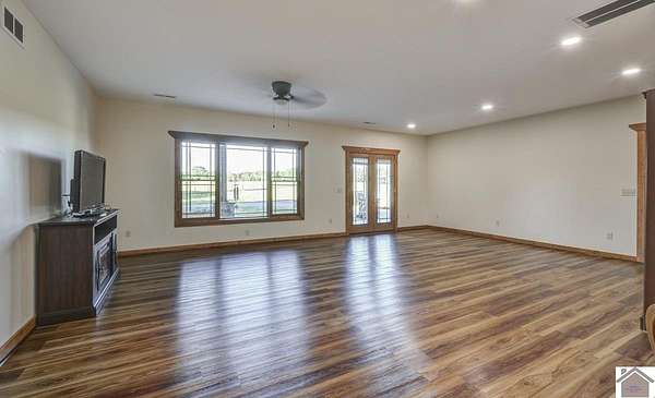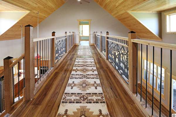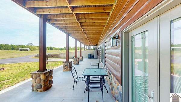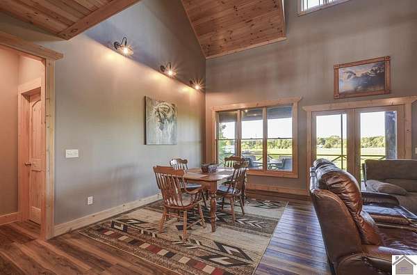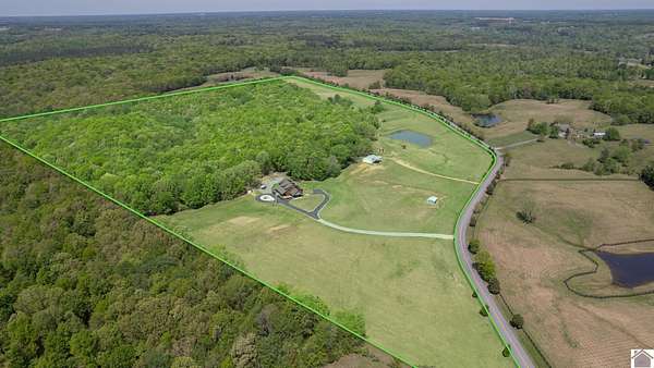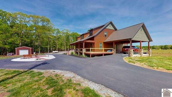 Enjoy the perfect blend of comfort, space and natural beauty with this gorgeous rolling 69.90 acre property. The home features steel insulated log style siding and a raised seam roof, whole house generator, 600 amp electrical service. Maintenance free for years to come! Ideal for those seeking a private retreat or working homestead, this property offers a rare combination of wooded areas and open pasture with a pond perfect for horses or livestock. The main level offers an open floorplan with expansive windows, wood stove, massive laundry room and a screened in porch, while the lower level offers a complete 2nd living space with kitchen and laundry facility, full en'suite bedroom and 1 car drive under garage. The home features 5 bedrooms with another room on the lower level that could be a 6th if needed. The cat walk above the great room that connects the upper floor bedrooms features iron panels custom made with a pastoral horse motif. So many custom details in this home!