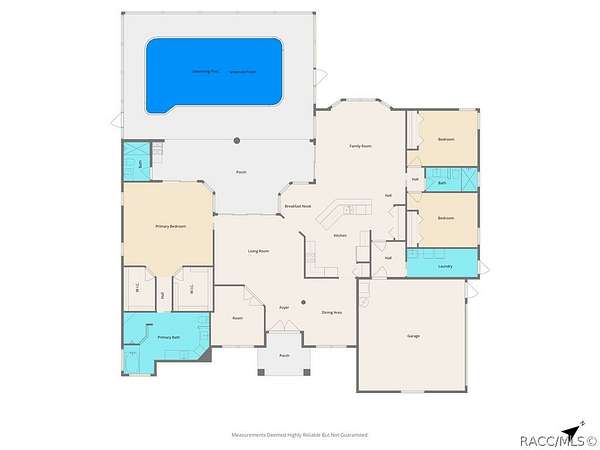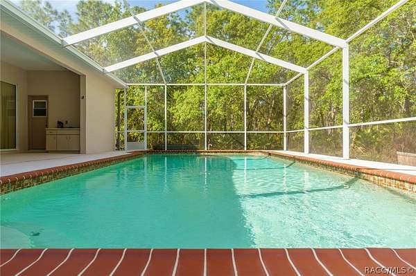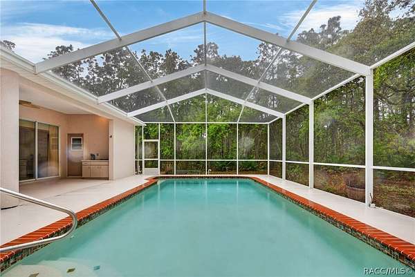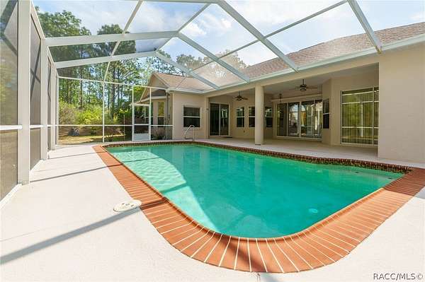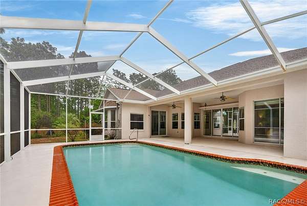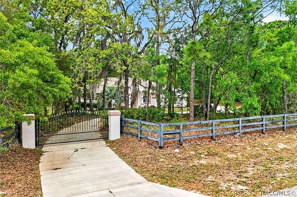 Picture arriving through a wrought-iron gate that opens to reveal a gently curving driveway lined with beautiful nature. This home is set on 3.03 acres of secluded land, this luxury residence offers both privacy and refined comfort. The home itself is an elegant blend of timeless architecture and modern amenities featuring 3 bedrooms and 3 full bathrooms. This home is equipped with smart home technology. The sliding doors are the premium 90/80, which gives approximately 2 more feet of an elevated view. The windows are the same, a premium design allowing 2 more feet of scenery throughout the home. As you step inside, you're welcomed by soaring ceilings and an abundance of natural light pouring through the oversized windows that frame serene views of the surrounding property. The oversized kitchen is outfitted with stainless steel appliances and a breakfast bar that can easily sit 6 or more people. Each bedroom is thoughtfully designed, but the primary suite stands out as a private retreat with a spa-like bathroom featuring a soaking jet tub, walk-in shower, dual vanities, 2 very generous walk-in closets and a grand opening to the lanai. Step outside to the beautiful pool and a newly screened lanai with a full bathroom and built in electric grill. All 3.03 acres are fenced in with a beautiful walking path and fruit trees throughout. This very quiet property is on a corner lot, with a protected lot on the other side. Reno is a short street, unmatched in privacy. All tucked within a secure, gated setting that offers both exclusivity and tranquility. This is more than a home - it's a private estate designed for elevated living. View the video tour!