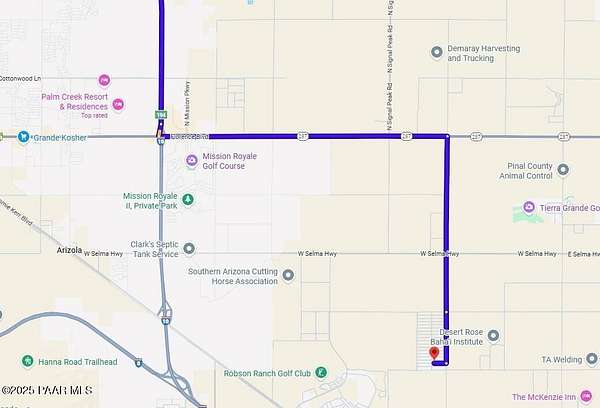 I-10 to left on Florence Blvd. exit. Right on N Hacienda Rd. Left on Selma Hwy. Right on S Curry Rd. Right on Tollan Dr to sign.