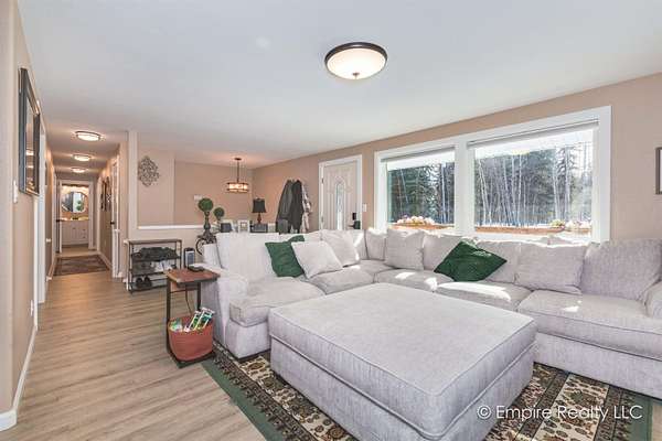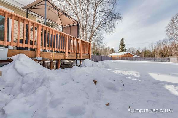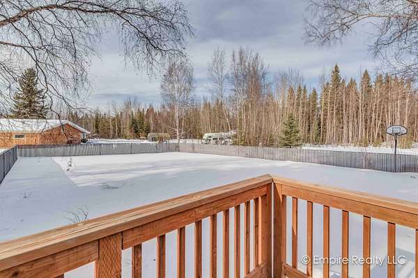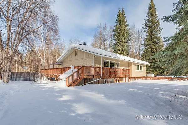 Est $2,490/moWelcome to this amazing 4-bedroom home sitting on almost 2 acres located conveniently between Ft Wainwright/Fairbanks and Eielson AFB. The open kitchen with solid surface counter tops, dining area and living room make it a great setup for daily living and entertaining. The master suite is located upstairs along with two other bedrooms and full bathroom. Downstairs is the fourth bedroom with full bathroom, family room and separate laundry room. There is a good sized 2 car garage. Outside you will find a spacious wrap-around deck and fenced backyard.