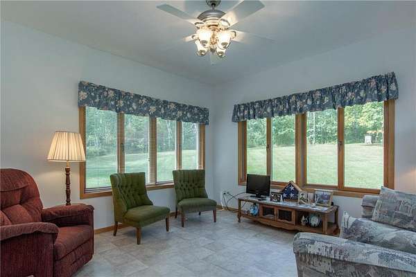 Custom built 3 bed, 3 bath home on over 125 acres in Isle, MN. This 2452 sf home features 9' walls, roomy kitchen with a mobile center island, and a beautiful family room that has expansive windows to enjoy viewing the abundant wildlife. The main floor has 3 large bedrooms, a ¾ bath as well as a full bathroom with gorgeous custom cabinetry. The living room has a bright airy feeling offering beautiful views of the natural pond! This is one level living at its finest! The attached 26x26 garage is heated and insulated with 200-amp service available and has convenient access to the full basement. There is an additional detached 28x40 garage for extra storage. The entire home and garage are clad in Hardy Board® siding. This home was built with top quality in mind, just look at all the expertly crafted details! This home was built in 2010 but looks brand new, as it has had very limited use! The dry full basement has been constructed with Insulated Concrete Form (ICF) walls, the best material available, and features a finished 3/4 bath and plenty of space to expand. There is a whole home standby propane generator to protect from power loss that switches seamlessly to the generator and back to municipal power automatically. This home is situated on 125+ acres of gorgeous land with rolling hills that are perfect for hunting or tilling! There are several deer stands included in the sale. There are also hundreds of acres of state land near this property. This property would make a fantastic hobby farm too! If you are looking for a very peaceful and serene area, this property is it! Located only 1 hour to the cities, it's in a perfect location, only 20 minutes to Isle and Mille Lacs Lake or just 15 minutes to Mora MN. The best of both worlds!