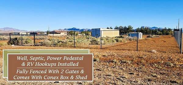 Wow, Wow, Wow!! This Exceptional 2.1 Acre Corner Property Already Has The Well, Septic, Power Pedestal & RV Hookups Installed & Is Located In A Highly Desired Western Pahrump Neighborhood~~The Mountain Views In This Area Are Outstanding, The Sunsets Are Amazing & You'll Enjoy Being Situated With Other Large Parcels With Plenty Of Room To Roam~~The Property Is Fully Fenced With 6 Foot Chain Link, Has Two Access Gates & The Conex Box & Shed Also Come With The Property~~Pick Which Way Your New Home Will Face On This 90,000+ Sq. Foot Parcel Which Is Also Allowed To Have Two Homes, If One Is Under 1,500 Sq. Feet~~The Seller Will Finance Or Ask About Lenders Now Offering Land Loans~~3111 Jollie Way Has Tens & Tens Of Thousands In Improvements, An Excellent Location & So Much Potential For Your Pahrump Plans~~Lock This One In Today!