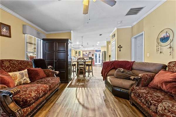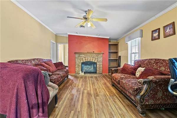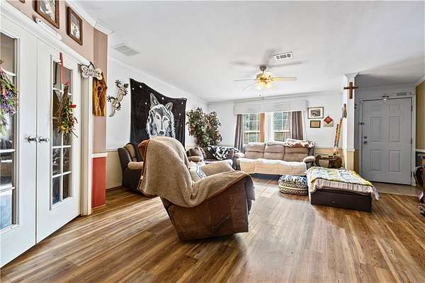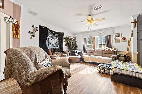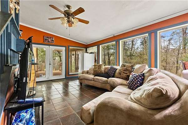 This incredible property features over 1240 ft of frontage on Osanippa Creek leading to beautiful Lake Harding! The property is fenced, cross fenced and gated giving you all the privacy you could ever want to live in the spacious 4 bedroom 3 bath home with a fabulous sunroom stretching the entire length of the back of the home. The kitchen has loads of cabinet space, counter space and a large island for additional food prep space. The open concept opens to a formal dining area, office with French doors for privacy and a spacious living area. The primary bedroom is large with lots of closet space and a huge ensuite bath with double vanities, large tub and separate shower. Bedrooms 2 and 3 share a "Jack & Jill" bath while the 4th bedroom has it's own private full bath. This is a wonderful layout with the primary bedroom being separated from the other three. The possibilities are endless for this property! There are three separate water meters and three septic tanks lending this property to becoming your own family compound or simply enjoying the complete privacy of a single residence on 9 acres!! This property must be seen in person to appreciate the peace and solitude it provides!!