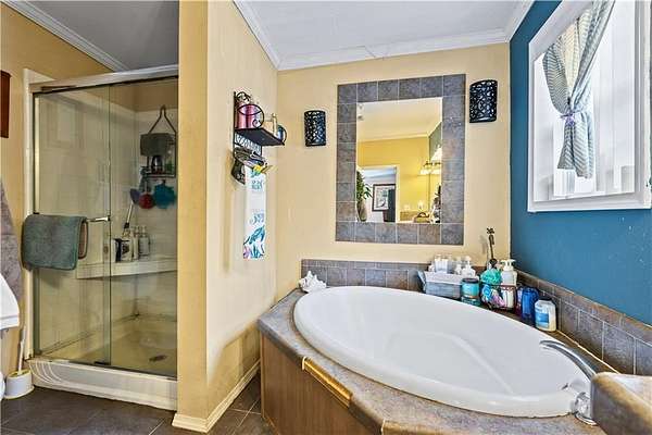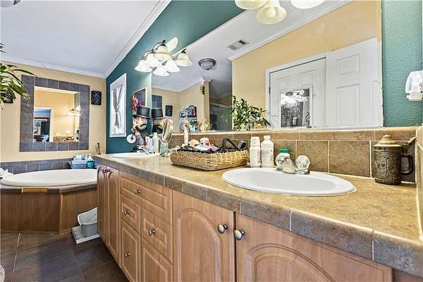 - Ceiling Fans, Draperies/Curtains, Garden Tub, Primary Bedroom Downstairs, Skylight(s), Washer/Dryer Connection
