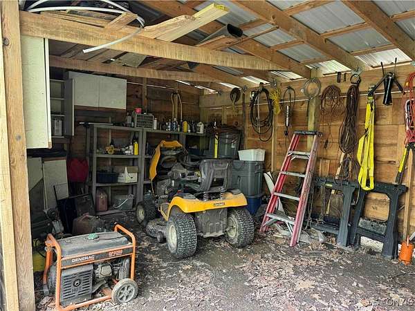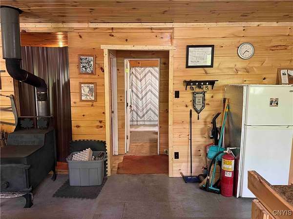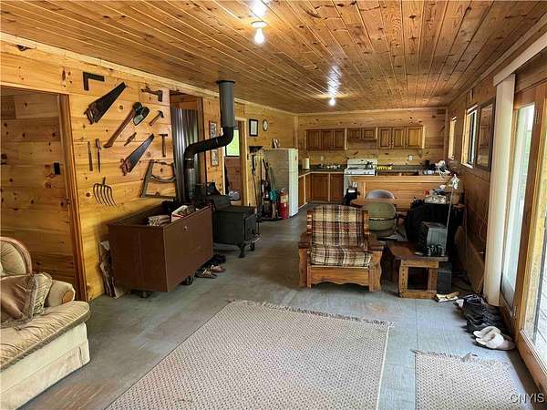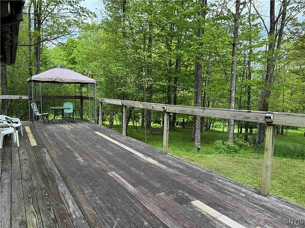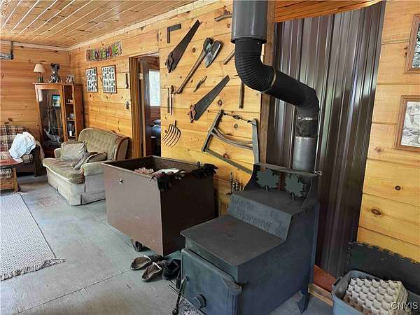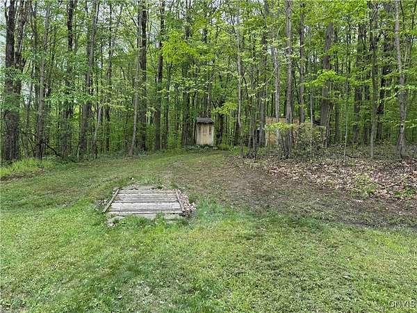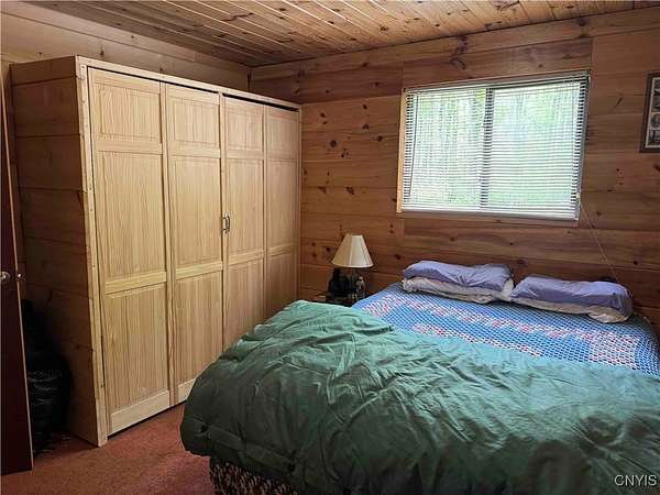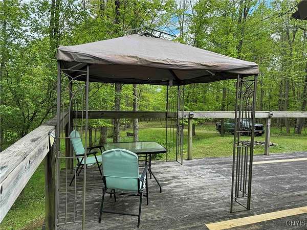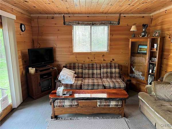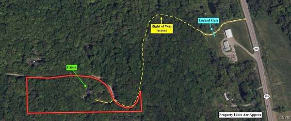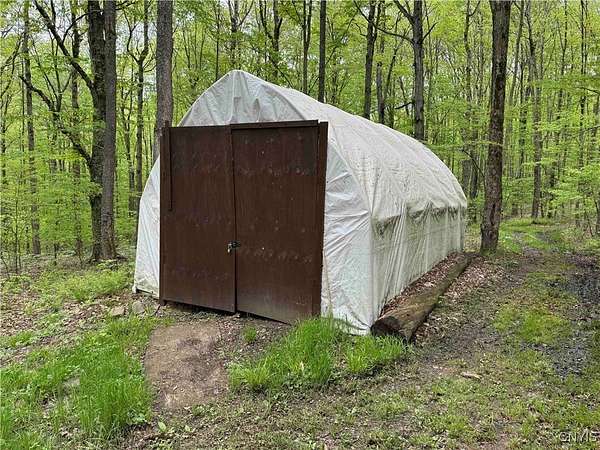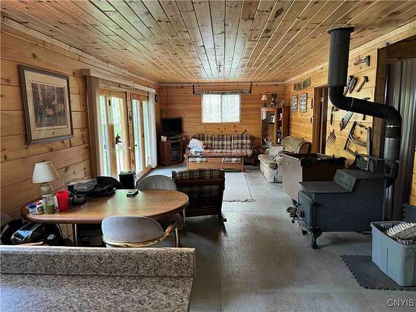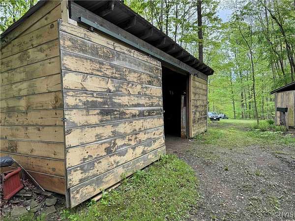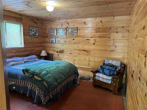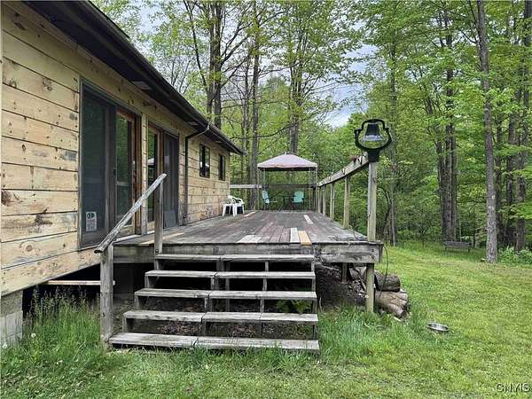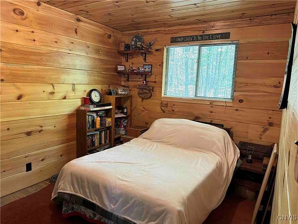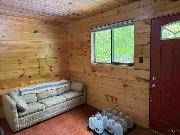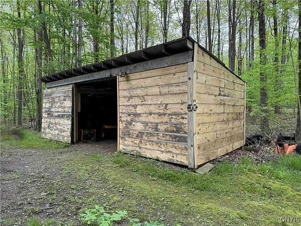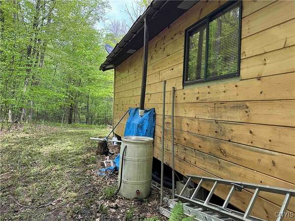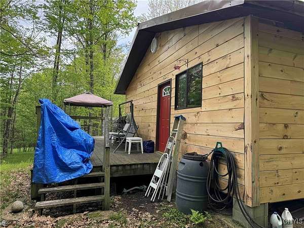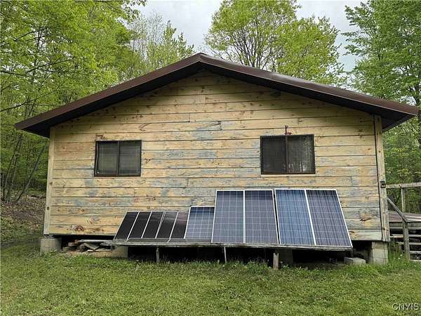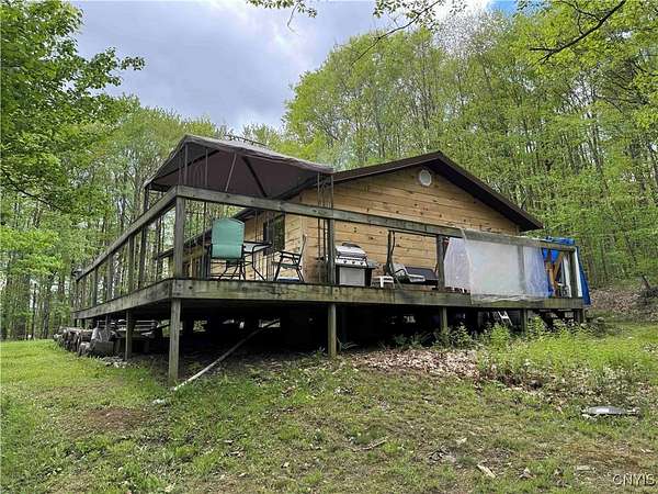 This secluded cabin sits on 4 acres and is located in Cuba NY, Allegany County. Welcome to your private oasis surrounded by nature. The cabin has 988 sq. ft. and offers 2 large bedrooms and 1 full bathroom. There is a spacious kitchen with a breakfast bar, and an open concept living-dining room area. Heat is provided by a wood stove. There is a rainwater retention system that provides water to the shower, toilet and sink. There is a 1,000 gallon holding tank for the septic. Electric is provided by solar with batteries for banking. Partially wrapped around porch with gazebo for enjoying the outdoors. The cabin is surrounded by woods. Plenty of space to add on to the property or park a camper. The 4 acres is mostly hardwoods and an open space around the cabin. There is some nice timber throughout. Wildlife on the property includes whitetail deer, turkey and a variety of birds. Behind the cabin is a barn-workshop and a large plastic Quonset storage shed. The property is located three-tenths of a mile from Route 305 on a private road. There is a locking gate at the front of the right-of-way. Only landowners have access on the private road. Annual taxes are $1,455.58. Great getaway to escape from the outside world. Surface rights convey. This property is located approximately 10 minutes from Cuba NY, 13 minutes from Portville NY, 25 minutes from Olean NY, 30 minutes from Wellsville NY, 45 minutes from Ellicottville NY, 1 hour 30 minutes to Buffalo NY, and 1 hour 40 minutes to Rochester NY.