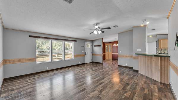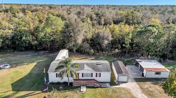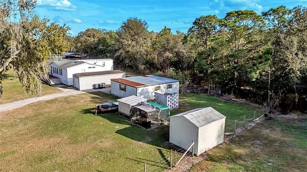 This spacious Palm Harbor manufactured home offers 5 bedrooms, 2 bathrooms, a chicken coop, a tree swing, and a fire pit, all nestled on 5.98 beautiful acres.