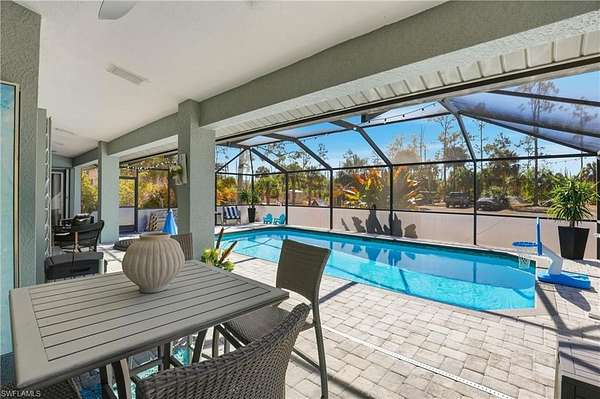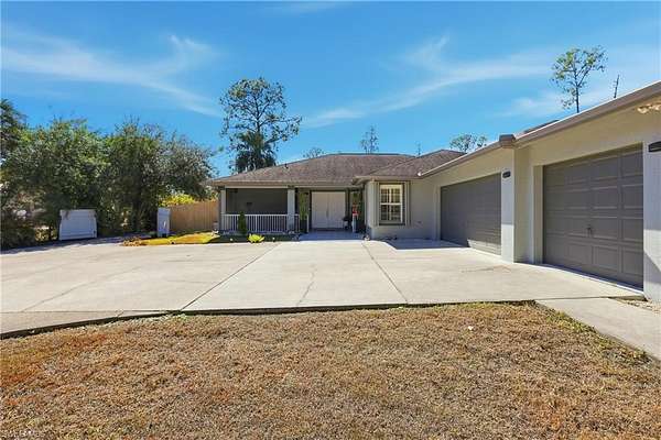 Modern Pool Home on 2.5 Acres, this modern-style residence offers refined living with a thoughtfully designed modern split floor plan featuring 3 bedrooms, 2 bathrooms, and a 3-car garage. The main living areas flow seamlessly, providing an ideal layout for everyday living and entertaining. The property welcomes you with landscaped grounds, a paved asphalt driveway, exterior gutters, and a double-door entry. Interior features include high ceilings and tile flooring throughout. The updated kitchen showcases custom cabinetry and stainless-steel appliances, opening to the living and dining areas. The primary suite is privately situated on its own wing, offering a spacious bedroom, walk-in closets, dual vanities, an oversized dual-entry shower, and a separate soaking tub. Situated on 2.5 acres, the property includes a renovated pool, guest house, and additional structures providing flexibility for guests, storage, or hobbies. Side access allows for parking or storage of large vehicles, trucks, RVs, or equipment. This home offers a rare combination of modern design, privacy, and functional outdoor space, making it an exceptional opportunity for a variety of lifestyles. A recently renovated one-bedroom one-bath guest house adds valuable flexibility, offering an ideal retreat for guests or family members. Please be advised that the garage has been converted into a mother-in-law suite 2 bed & 1 bath. no official record of this conversion appears in the Collier County Property Appraiser's records.