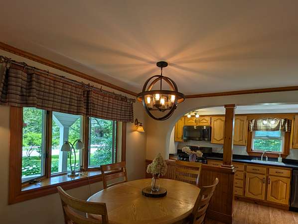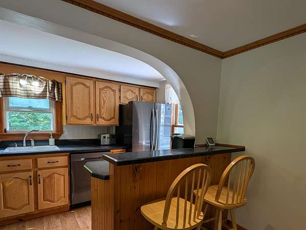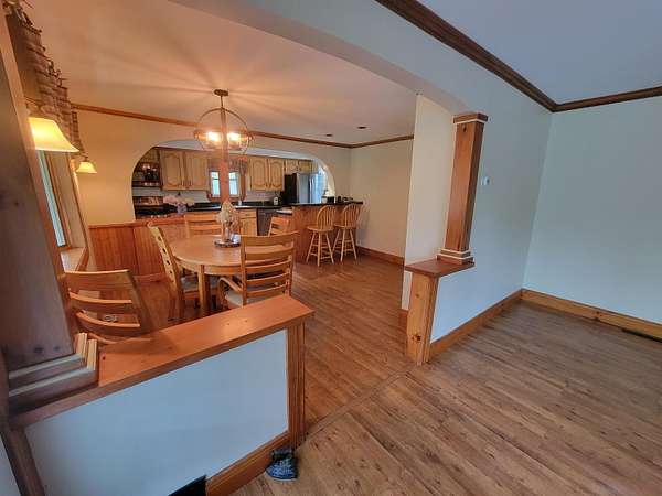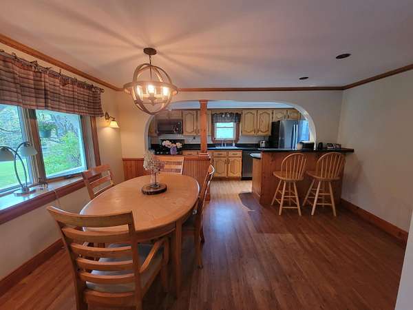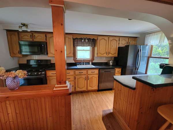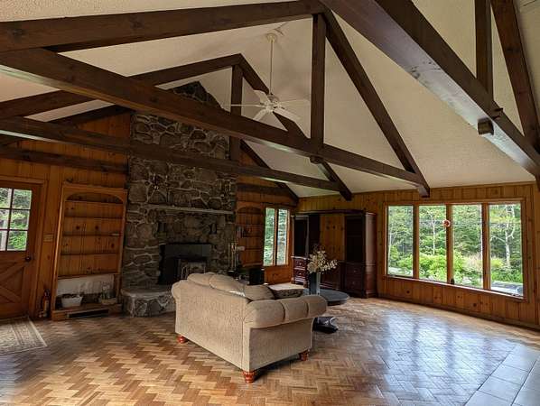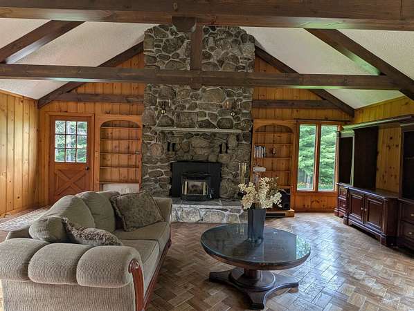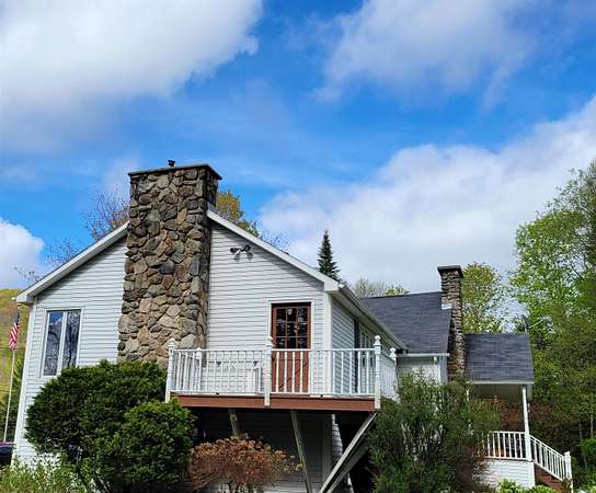 Don’t miss your chance to tour this newly relisted property. Temporarily withdrawn from the market over the winter, it’s now back and ready to become your dream home. Filled with beauty, style, and warmth, this 3-bedroom, 2-bath home sits on 4.4 acres and offers an array of standout features. Highlights include a stunning fieldstone fireplace and an expansive Great Room—perfect for hosting large gatherings or unwinding by the cozy pellet stove insert. Enjoy living space across three levels, along with a serene, spring-fed pond that enhances the property’s natural appeal. The lower level features a dedicated laundry room and a versatile bonus room with a second fireplace and convenient walk-out access to both the carport and garage. Step outside and you’ll find two covered porches ideal for relaxing or entertaining, a designated outdoor cooking area, and a level yard perfect for lawn games. The brook trout pond provides year-round enjoyment, while direct access to the VAST snowmobile trails makes this property a true outdoor enthusiast’s retreat.