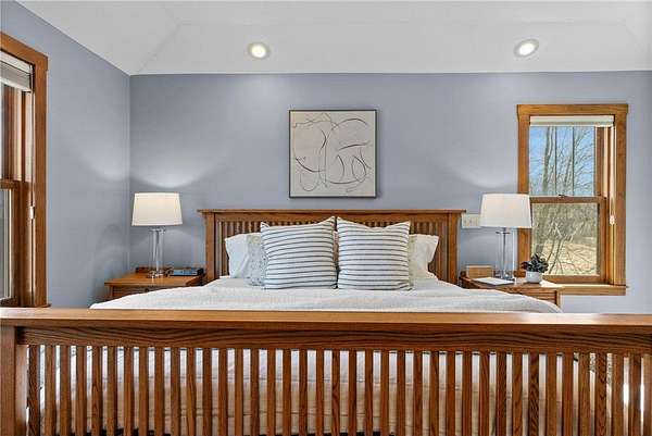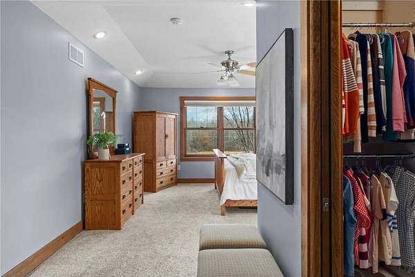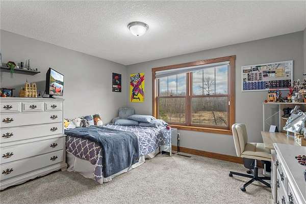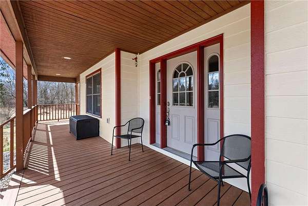 This custom 5-bedroom, 4-bathroom home on 38 acres has delivered space, comfort, and self-sufficiency since 2005. Radiant in-floor heating runs throughout the basement, garage, and heated shed. Five bedrooms accommodate a large family, guests, and a main-level office. The turnkey owner's suite features Amish-made furniture and an attached furnished office that is framed as an additional bedroom.