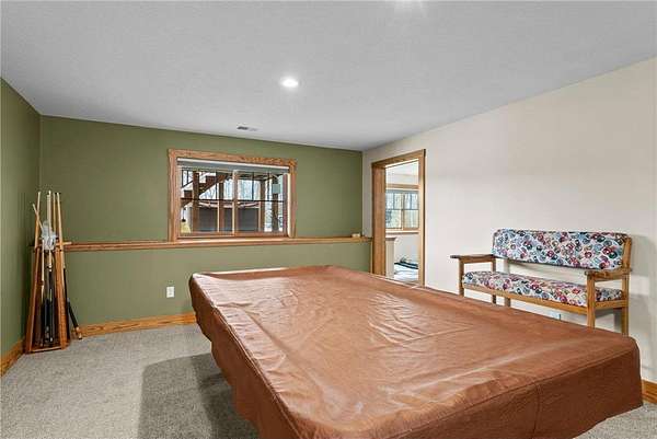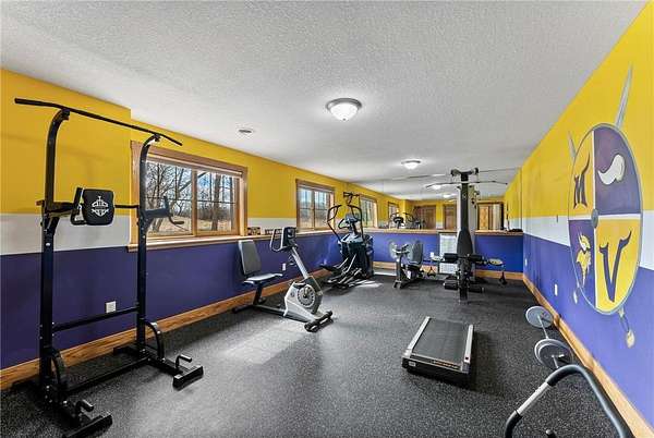 Beyond the basics, the home includes a furnished movie room, a fully equipped private workout room, and a basement entertainment area plumbed for a wet bar and complete with billiards, table tennis, and darts, making rural living genuinely comfortable year-round.