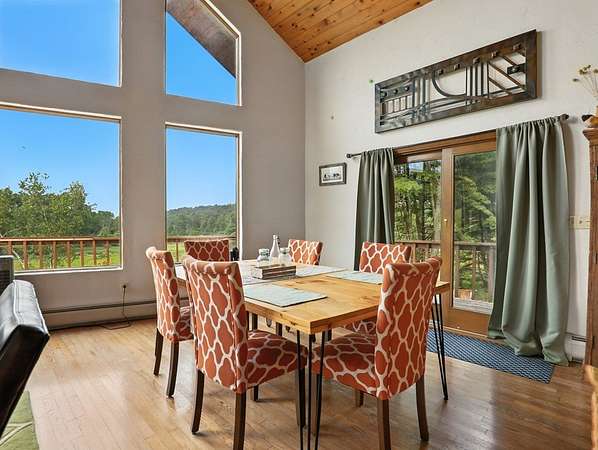 Experience the perfect blend of modern comfort and natural beauty in this stunning 2-bedroom, 2-bathroom home set on 45.73 picturesque acres. Offered to the market for the first time, this residence boasts an open-concept design with vaulted ceilings and floor-to-ceiling windows in the great room, framing breathtaking views in every season. Enjoy seamless indoor-outdoor living with a full wrap-around porch, perfect for relaxing or entertaining. The unfinished basement offers incredible potential for additional living space. While the expansive acreage provides endless opportunities for recreation, hunting, farming, or simply soaking in the peace and privacy of your own retreat. With its thoughtful design and unmatched surroundings, this property offers a rare opportunity to own a slice of paradise!
