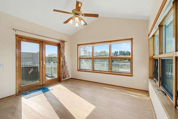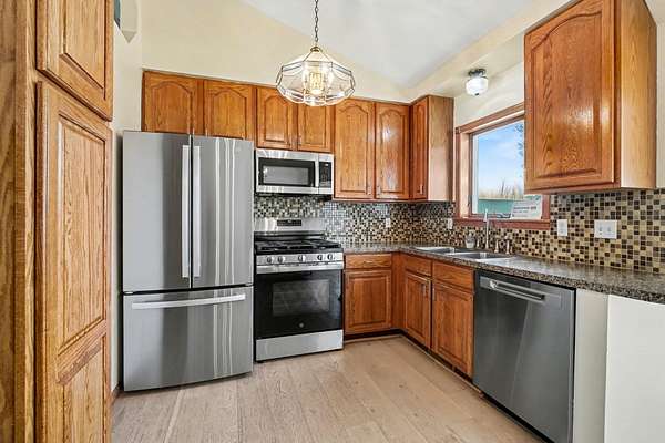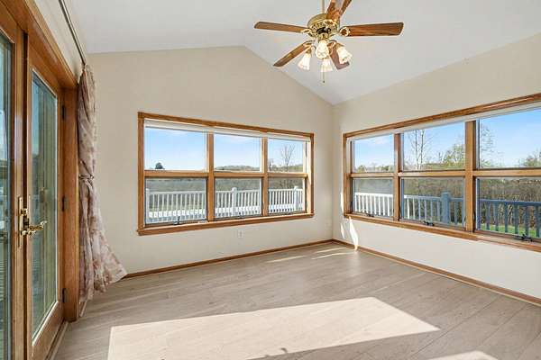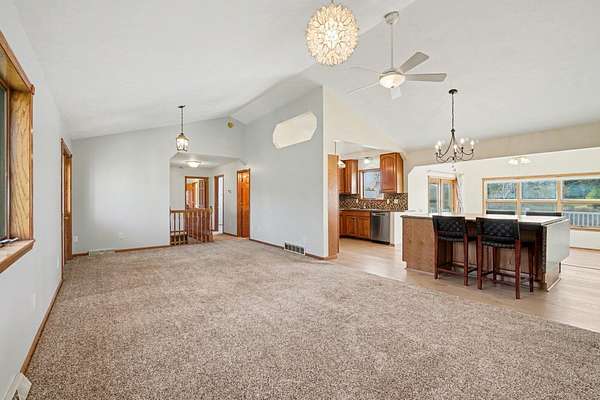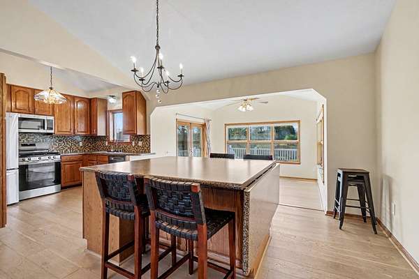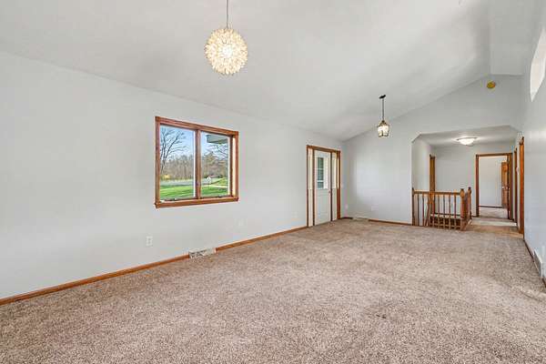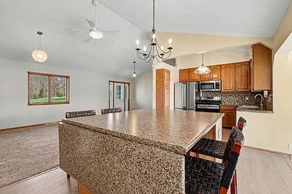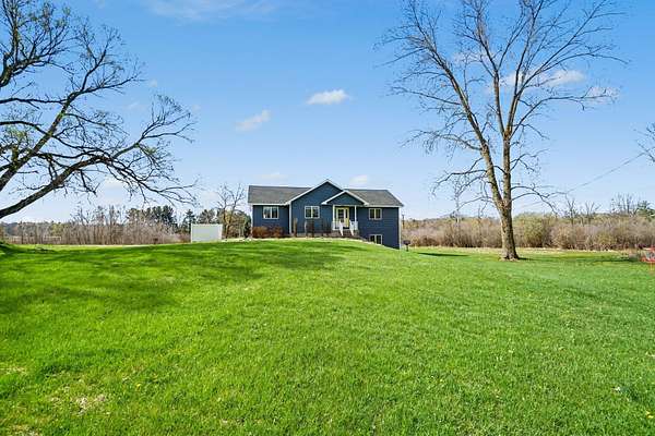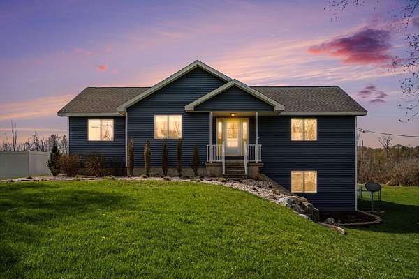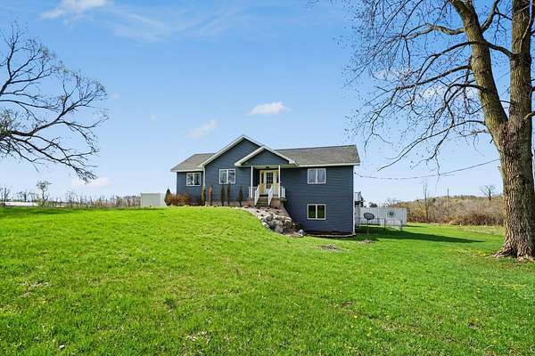 Welcome to this beautiful, freshly painted, walkout ranch home situated on over 7 acres of serene land. This spacious property features 4 bedrooms and 3 bathrooms, providing ample space for families or guests. The inviting open-concept design seamlessly connects the living room, dining area, and kitchen, creating a warm atmosphere filled with natural light. The modern kitchen is well-equipped with brand new stainless steel appliances and plenty of counter space, making it ideal for cooking and entertaining. The master suite offers a private retreat, complete with an ensuite bathroom designed for relaxation. Three additional well-sized bedrooms ensure comfort and flexibility for various needs, whether for family, guests, or a home office. Outdoor living is a highlight of this property, with easy access from the main living areas to the expansive outdoor space. Enjoy your morning coffee on the deck, host gatherings, or simply unwind in nature. The land is ideal for future pole barn,
