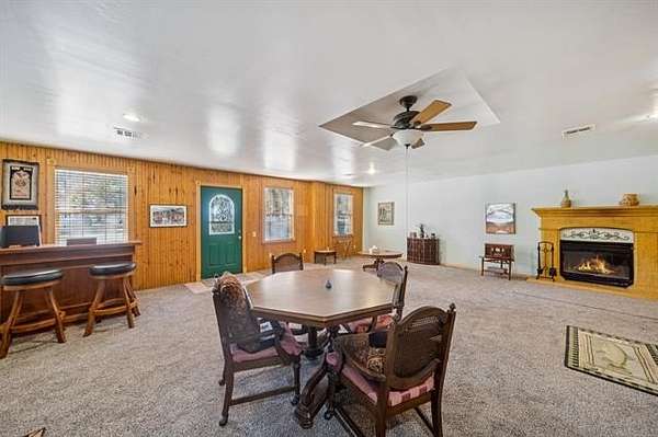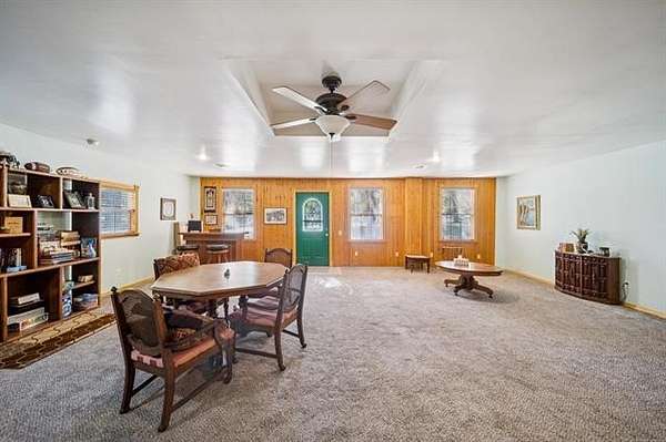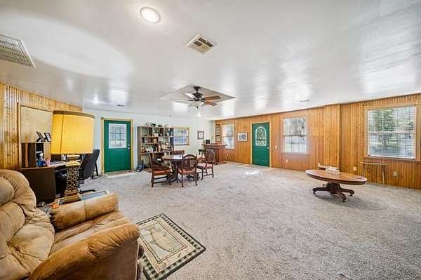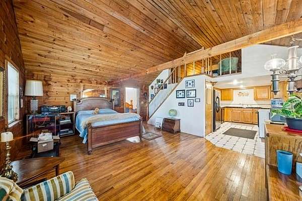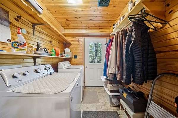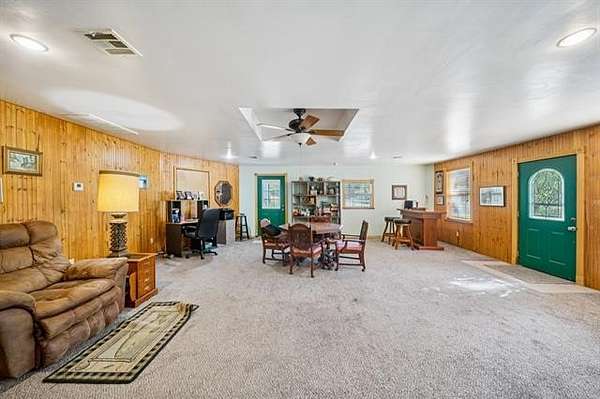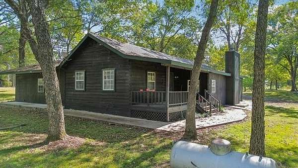 Nestled on 2.5 peaceful wooded acres (+/-) just minutes from Lake Hudson, this charming 2 bedroom, 2-bath home offers the perfect blend of tranquility and convenience. Surrounded by mature trees including stately pecans, the property delivers a private, serene setting ideal for relaxing or weekend getaways. Step inside to a spacious great room featuring a cozy woodburning fireplace, perfect for gathering or entertaining. The quaint kitchen carries a warm, inviting feel with plenty of storage. The large primary suite offers comfort and relaxation with a private bath complete with jetted tub. The other full bath offers a walk-in shower, and the loft area would be ideal for a 3rd bedroom if wanted. Enjoy the outdoors from the patio located in front of the home or from the large covered back porch, overlooking the beautiful, wooded landscape. A large garage/workshop provides ample space for storage, hobbies or projects. If you're looking for a county setting that offers peace and quiet, you will want to check out this charming home nestled in the woods and ideally located to town and lake living.