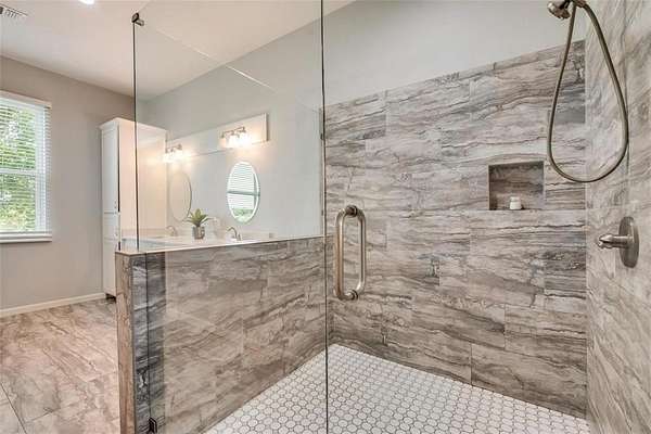 The spacious primary suite serves as a private retreat with durable vinyl plank flooring and plenty of room to personalize.