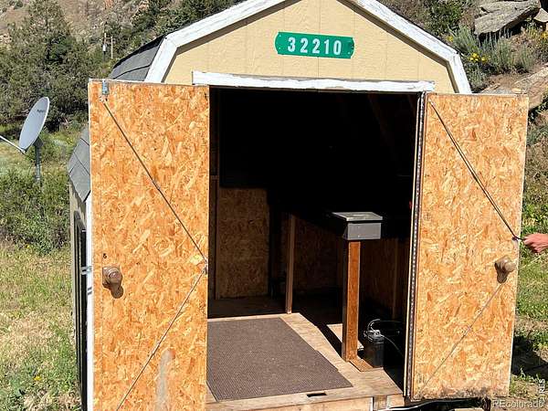 Priced to SELL! Exceptional 4-acre building site in the scenic Poudre Canyon. WATCH AERIAL VIDEO! Discover a rare opportunity to own a versatile 4-acre parcel located just a half mile west of the Glen Echo convenient store. Enjoy close proximity to the Poudre River just across the road, with approximately one acre of level, buildable land elevated about 10' above Hwy 14. This unique property borders the Roosevelt National Forest, providing direct access to great hiking and panoramic views from the upper terrain. Whether you're looking to build a mountain retreat, off-grid getaway, or recreation base camp, the possibilities are abundant. Improvements include a fully installed and operational 450W 12V 3-phase wind turbine, 50W solar panels with charge controller (inverter compatible, inverter not included), gas-fired incinerating toilet (Storburn brand) in outhouse, storage shed with workbench and renewable energy system controls, two 250-gallon water cisterns, drip irrigation system for planted trees, and satellite dish compatible with HughesNet internet. Site is septic-approved. This property offers great mountain landscape, self-sufficiency, and proximity to local amenities, making it perfect for anyone looking to enjoy the tranquility and rugged beauty of Northern Colorado's high country.