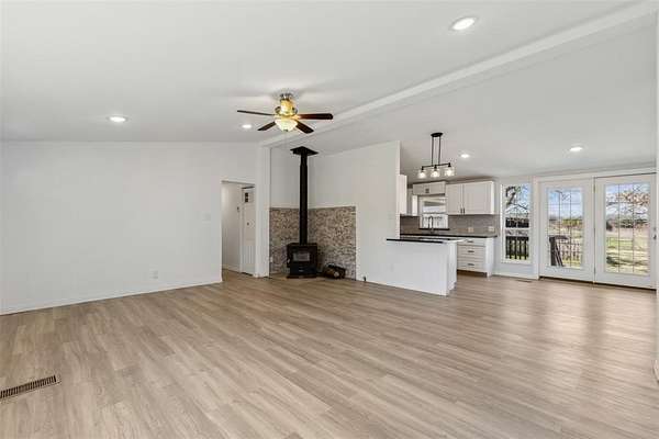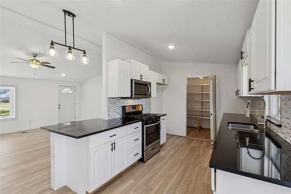 Make this beautiful home yours! This is a remodeled 4-bedroom, 2-bathroom with a large open living room with a bay window, a kitchen with all new cabinets, and a spacious pantry. The dining area also opens to the living room and the kitchen. This spacious property boasts vinyl plank flooring throughout for easy maintenance. Alongside this, it comes with split bedrooms for added privacy. This home also comes with a generously sized primary bedroom complete with a walk-in closet and an ensuite featuring dual sinks and a walk-in shower with a bench. Additional bedrooms are spacious with good-sized closets. The home also includes a hallway office or craft space, an oversized utility room with a mudroom, and a good-sized garage and outbuildings. Situated on 10 acres, with large front and back porches, there is plenty of room for horses and chickens, making this the perfect country retreat for those seeking space and tranquility. Don't miss out on this opportunity to make this paradise your home.