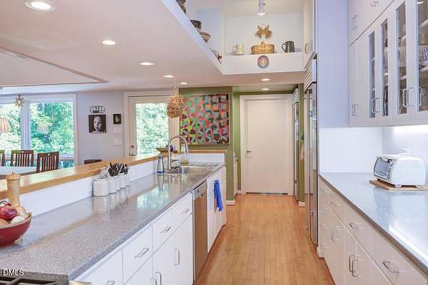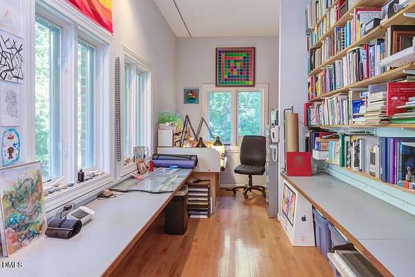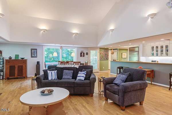 A private sanctuary on 10 peaceful acres, where one-level living meets thoughtful and creative design. Owned by an architect, this home is filled with unique touches that make every space special. At its heart is a cook's dream kitchen that opens to the expansive living area, showcasing a professional-style Fulgor Milano 6 burner with griddle and double-ovens range, a Sub-Zero refrigerator and a full-size separate Sub-Zero freezer, abundant cabinetry including upper cabinets ideal for long-term storage, a dedicated coffee station, and a gigantic pantry with utility closets. A striking Tulikivi fireplace anchors the spacious living room, radiating long-lasting warmth for cozy evenings. Each of the four bedrooms enjoys its own attached full bath, while the primary suite also boasts a wall of windows framing serene views and a wall of closets for exceptional storage. The convenient yet private office offers the perfect place to work and create while staying close to the action. Entertain or relax in the huge bonus/family room with a gas fireplace and plenty of space for game night, movie night or big slumber parties. Or retreat to the spacious sunroom where bird watching is a joy, and evening stargazing is a delight. A heated and cooled, mostly finished storage area provides remarkable flexibility, ideal as a workshop, exercise or hobby room, or whatever you can imagine. Even the garage is large, currently with half utilized as an amazing workshop, as is the oversized hidden parking pad. Near vibrant downtown Hillsborough, highways, and an easy commute to UNC and Duke, but with big rooms, natural light, storage galore, and even a whole-house generator all within the beauty of the natural setting, this house is a splendid retreat you may never want to leave!