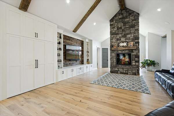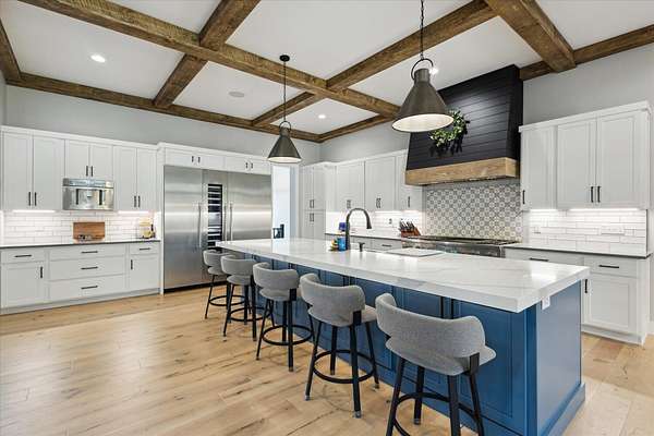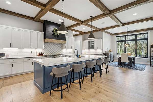 This home is everything you could imagine! Exposed wood beams throughout, immense storage throughout, 2 full kitchens plus 1 more kitchen outside, additional butlers pantry and holiday storage closet hidden in plain sight. Open great room/kitchen/dining (gourmet kitchen has Thermador appliances including 60'' range). Primary suite is extremely spacious with closet attaching to main laundry room. Split style with 2 guest rooms (jack-n-jill bath) on the opposite side each with lofts connecting the rooms. Additional flex room with closet currently used as office. The lower level is the perfect spot for watching games/movies, enormous kitchen/bar, guest suite, workout room, and large 2 room studio that could convert to many other uses. This entire home (inside and out) was designed for hosting your next party!