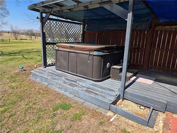 If you are looking to move to the country but stay on a blacktop road with 5+/- acres, this is the one for you! Three bedrooms and two and one half baths in a tri-level home with a metal roof. The house features two brick fireplaces with woodburning inserts to keep the house cozy on cold winter days. There is a hot tub on the covered back deck. Did I mention the two carports? One is 20'x18' and is 9' tall, the other is 25'x18' and is 13' tall. There is also a two car garage with plenty of shelving and workbench areas and a half bath as well. The kitchen comes with hard surface countertops and double stainless steel sink. The laundry room is on the same level as the bedrooms. Newer windows throughout. Set up an appointment and come take a look at this little farm home.