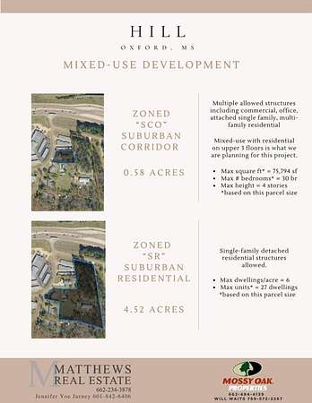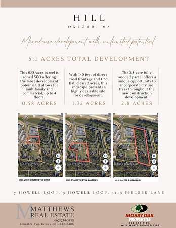 Prime 5.16+- Acre Development Opportunity - Mixed Residential & Commercial Zoning - Oxford, MS