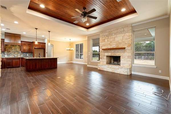 Step outside to enjoy peaceful cedar-surrounded acreage, a chain-link fenced area, and a back patio with a built-in grill—perfect for gatherings, cookouts, and relaxing Texas evenings.