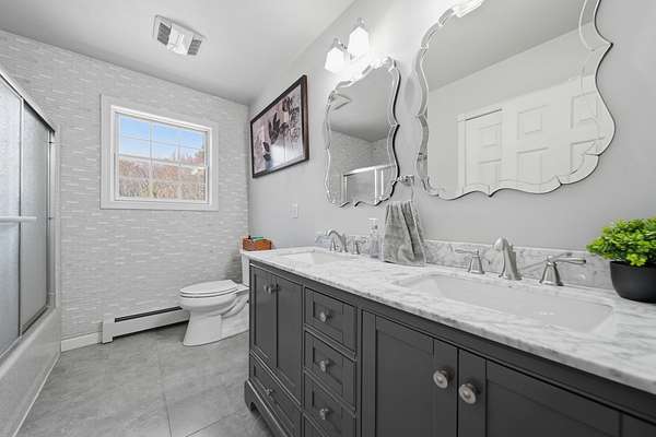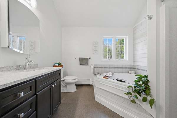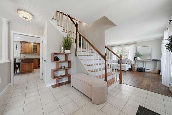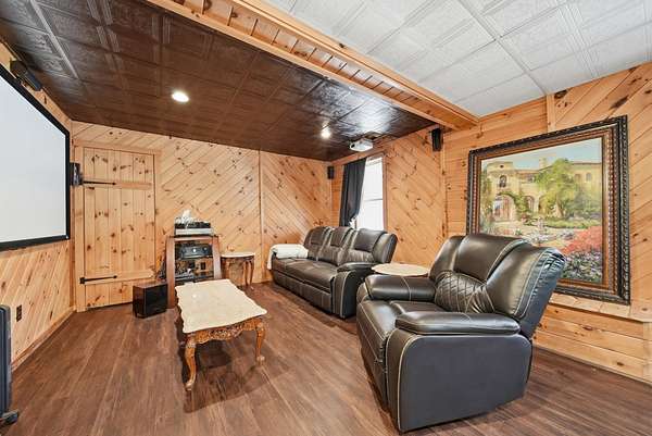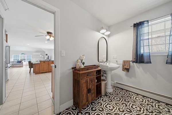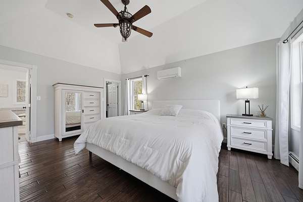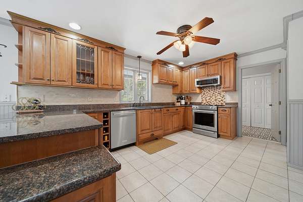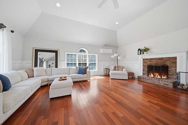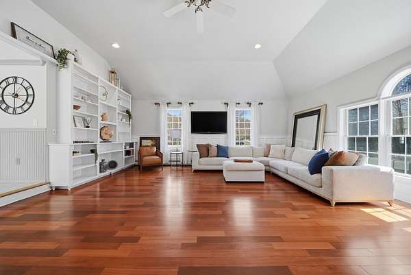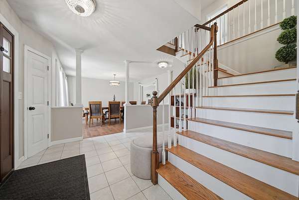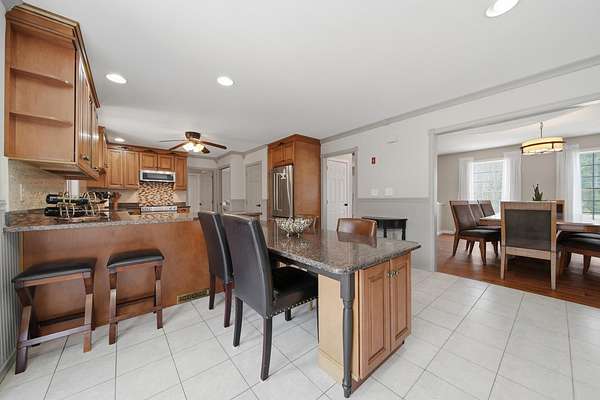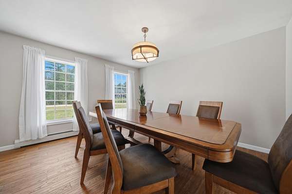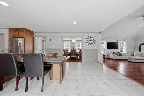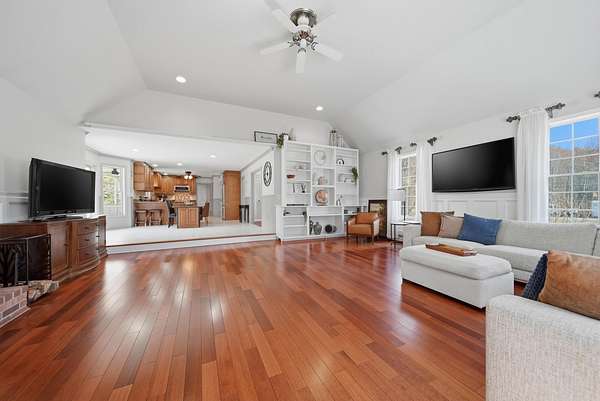 This is more than a home - it’s a lifestyle property offering privacy, space, and the opportunity to enjoy every season New England has to offer. Set on over 9 private acres in one of Chester’s most desirable neighborhoods within the Pinkerton Academy district, this meticulously maintained 4-bedroom Colonial offers the perfect balance of space, comfort, and lifestyle. From the moment you arrive, the setting invites you to slow down and take it all in lush surroundings, scenic trails, and a backyard designed for both relaxation and unforgettable gatherings. The heated saltwater in-ground pool, expansive patio, and partially covered deck create a true outdoor retreat, ideal for summer entertaining or quiet evenings overlooking the peaceful landscape. Inside, a welcoming foyer opens to a thoughtfully designed main level featuring hardwood floors and fresh updates throughout. The kitchen is the heart of the home, complete with stainless steel appliances and a custom peninsula for casual dining, flowing seamlessly into a formal dining room and an impressive great room with vaulted ceilings, a wood-burning fireplace, and custom built-ins. A second living area or home office adds flexibility, along with a convenient half bath and laundry. Upstairs, the spacious primary suite offers a private retreat with vaulted ceilings, a walk-in closet, and an ensuite bath with a double vanity and whirlpool tub. Three additional generously sized bedrooms and a full bath complete the second floor. The finished lower level expands your living space with a warm, inviting feel, featuring a gas fireplace, home theater setup, built-in bar, and direct walkout access to the backyard and pool area. Additional highlights include a walk-up attic for future expansion, a water softener system, new mini-splits, updated electrical, smart home features, and abundant storage. Car enthusiasts and hobbyists will appreciate the rare combination of a two-car garage under and a detached two-car garage.