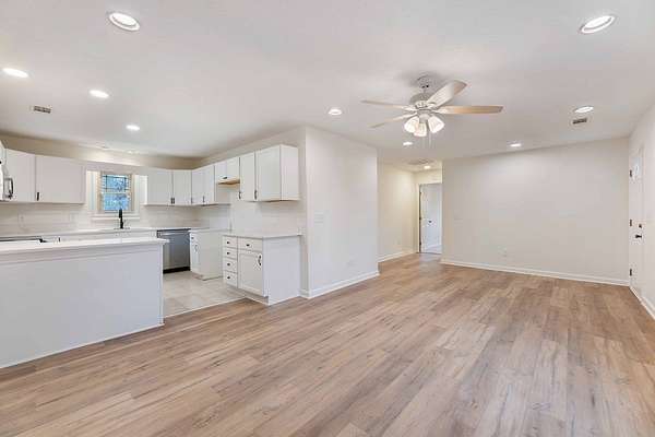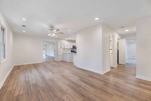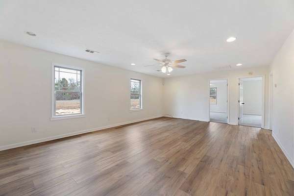 Set on nearly 2 acres, this inviting home features a spacious covered back porch perfect for morning coffee, afternoon relaxation, or evening gatherings overlooking your private yard. Step inside to an impressive brand-new kitchen, complete with stainless steel appliances, sleek quartz countertops, recessed lighting, and an open layout ideal for cooking and entertaining. The living areas showcase wide-plank flooring that adds warmth, character, and durability throughout the home. Multiple living spaces mean plenty of options - if you need a sunroom, living room, den, gym, home office or craft room, this home has you covered. Recessed lighting, fresh paint and brand-new carpet throughout. All this plus a spacious master with en-suite bathroom along with three additional guest bedrooms and two more full baths. Whether you're seeking a quiet homestead, a country getaway, or room to grow, this property delivers comfort, style, and space in a serene setting that's only minutes from city life.
