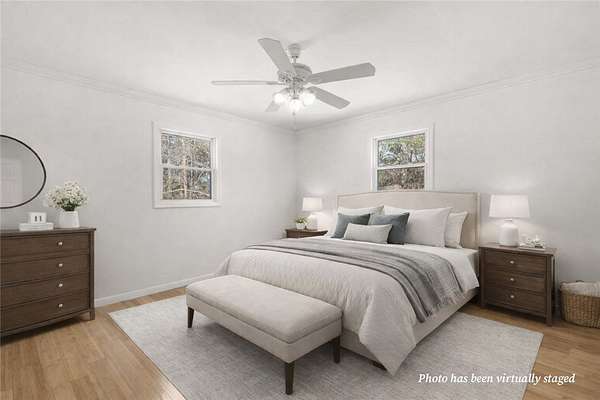 - Bath In Primary Bedroom, Ceiling Fans, Living Dining Room, Main Level Primary, Primary Suite, Separate Formal Living Room