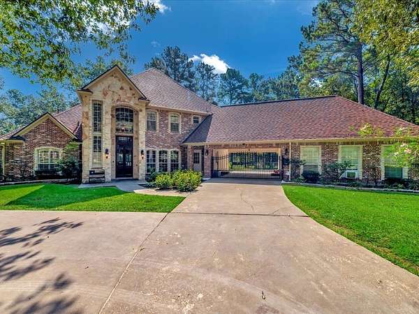 This beautiful, classic 4 bedroom, 3.5 bath home sits on almost 4 acres of manicured lawn. It offers the perfect blend of elegance and comfort. Designed with abundant natural light, this home boasts an open concept layout, soaring ceilings, and a spacious family room that flows seamlessly into the chef inspired kitchen complete with a double oven and pantry. The dedicated office space provides a quite area to work from home. The family room boast a wood burning fireplace, tall ceilings that open to the catwalk above. Seating will not be a problem with the dining room and breakfast area right beside the kitchen. Primary suite is oversized and relaxing with separate tub, double vanity and large shower. Laundry room is near an exterior door for convenience. Guest rooms are of great size. Relax and watch the wildlife roam on your large back deck. Stand alone carport would make for a great hangout spot. Completely fenced in back yard! Amazing location.