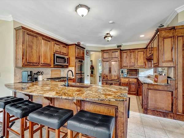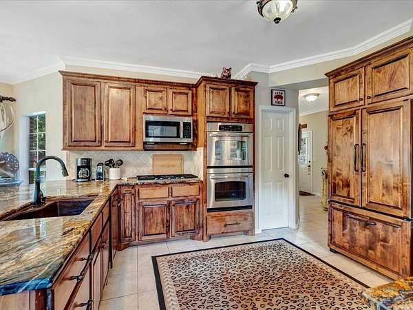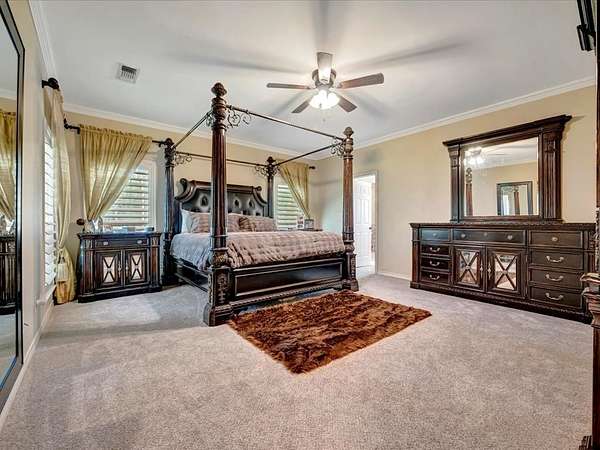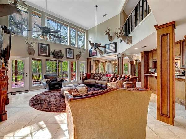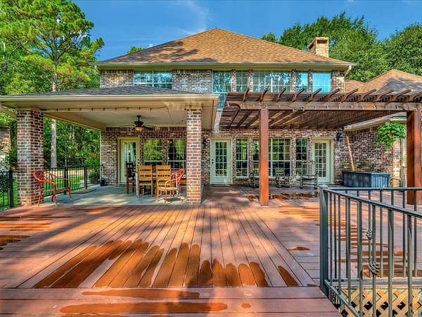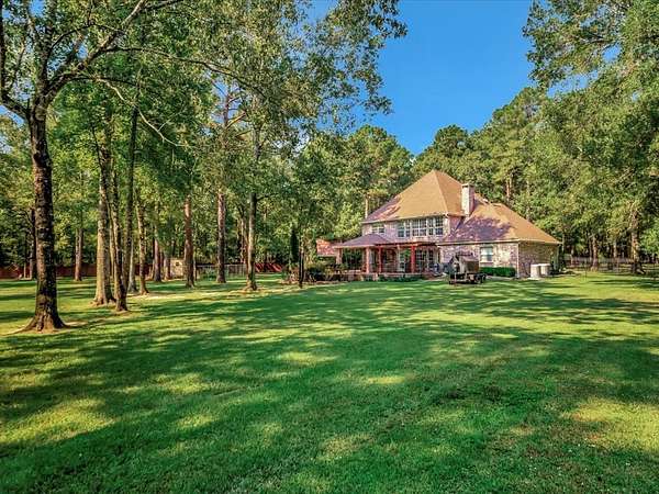 This beautiful, classic 4 bedroom, 3.5 bath home sits on almost 4 acres of manicured lawn. It offers the perfect blend of elegance and comfort. Designed with abundant natural light, this home boasts an open concept layout, soaring ceilings, and a spacious family room that flows seamlessly into the chef inspired kitchen complete with a double oven and pantry. The dedicated office space provides a quite area to work from home. The family room boast a wood burning fireplace, tall ceilings that open to the catwalk above. Seating will not be a problem with the formal dining room and separate breakfast area right beside the kitchen. Primary suite is oversized and relaxing with separate tub, double vanity and large shower. Laundry room is near an exterior door for convenience. Guest rooms are of great size. Relax and watch the wildlife roam on your large back deck. Stand alone carport would make for a great hangout spot. Completely fenced in backyard. AMAZING- come see!