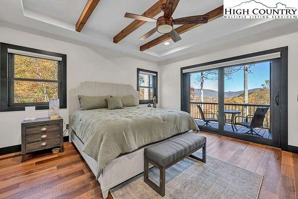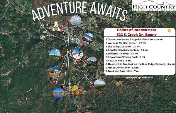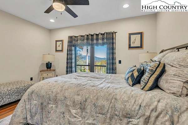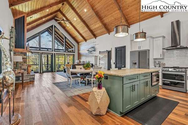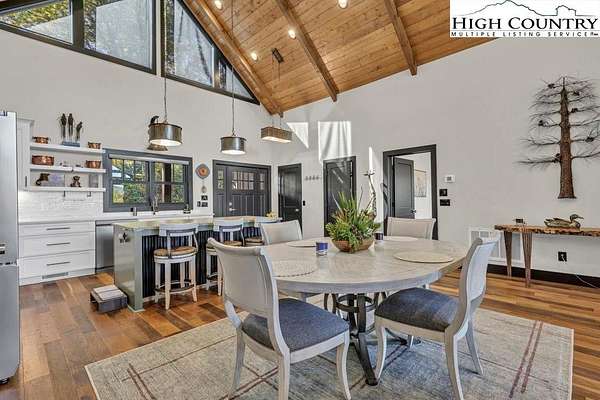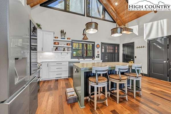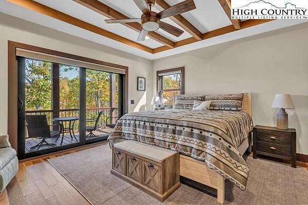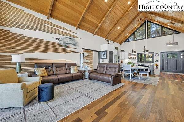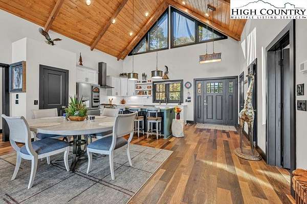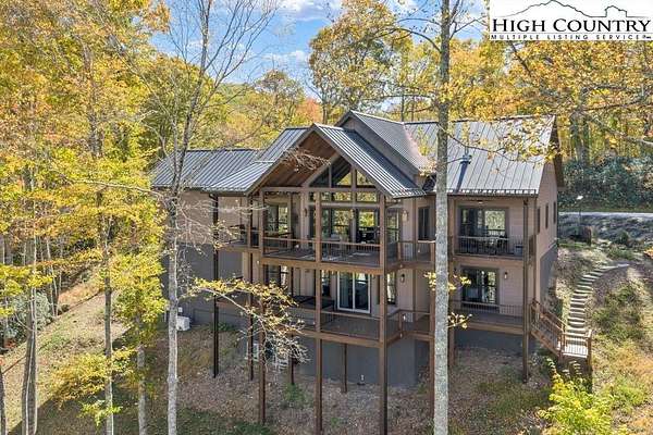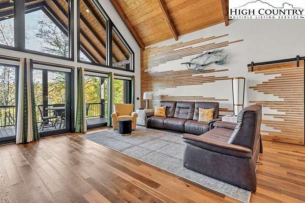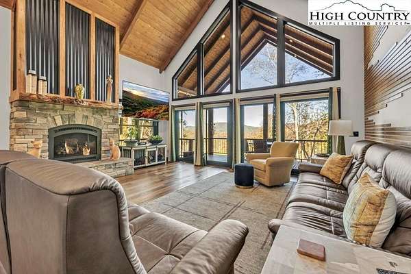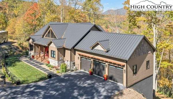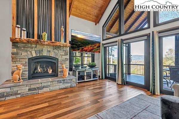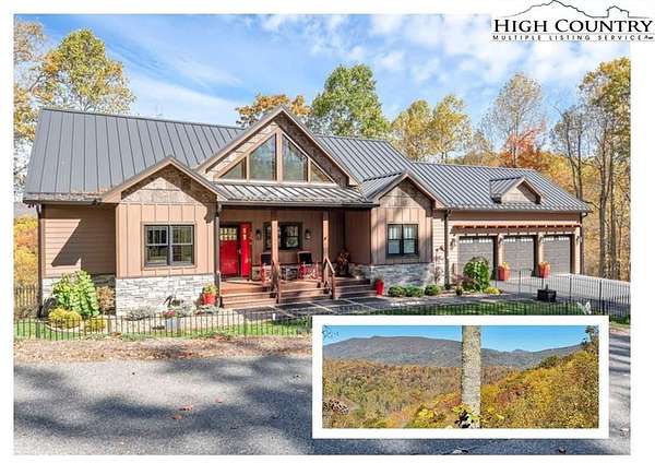 Welcome to 322 S Creek Drive -- a stunning custom-built mountain retreat completed in 2023. This remarkable property is being offered with two lots totaling 4 acres, providing both privacy and sweeping mountain views. This modern home is 5 minutes from the center of Boone, 10 minutes to Appalachian Ski Mountain and 15 minutes to downtown Blowing Rock or the Blue Ridge Parkway- yet when you are sitting on the private and peaceful deck, you feel miles from everything! Thoughtfully positioned to capture mountain vistas from almost every room of the house, the home is designed so that every bedroom opens to the outdoors, creating a seamless connection to its breathtaking surroundings. The main floor has a open concept kitchen, living and dining space with floor to ceiling rear windows to take in the amazing views. The gourmet kitchen showcases quartz counters, a leathered granite island, LG Signature appliances, and a 5-burner gas stove. The living room exudes mountain luxury with vaulted T&G ceilings, a striking stone fireplace with a custom burled ambrosia maple mantle, and seamless access to the deck -- even your furry family members have their own private door to enjoy the outdoors.