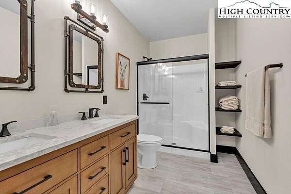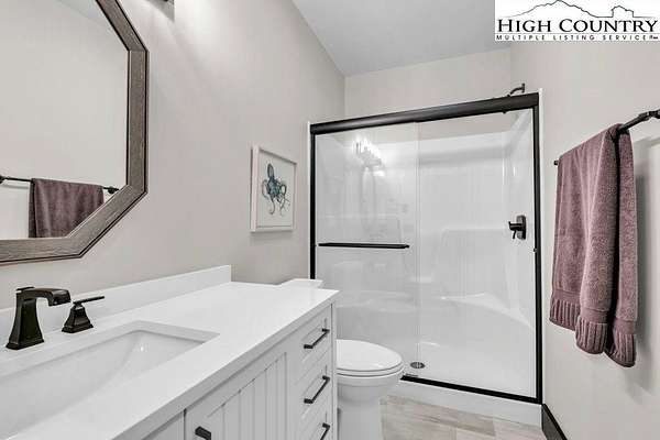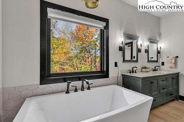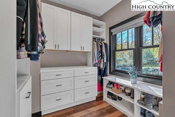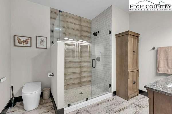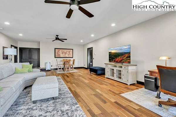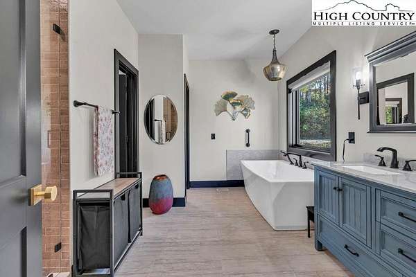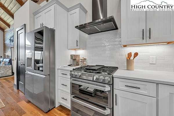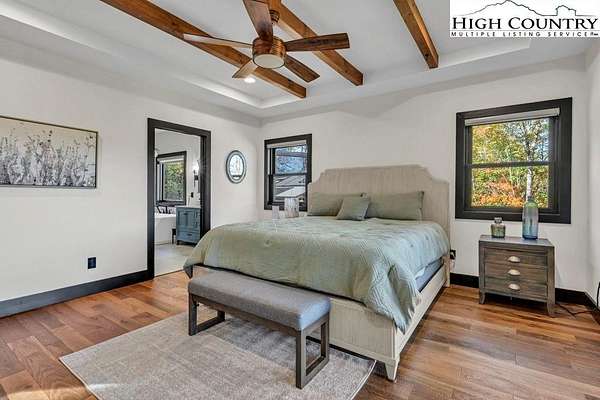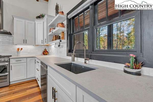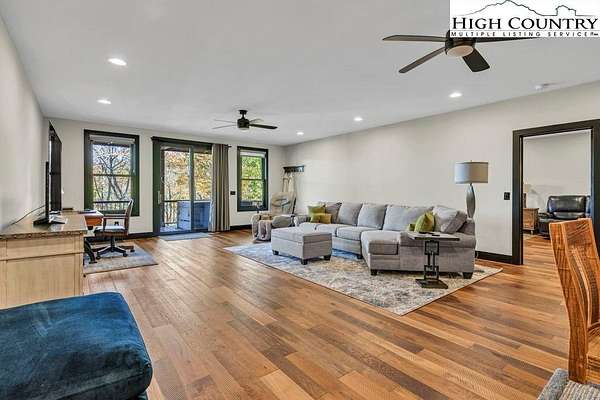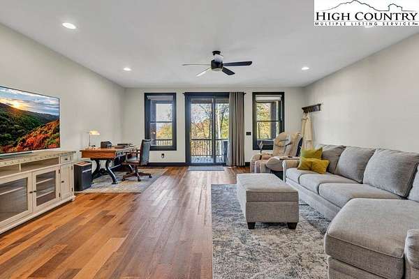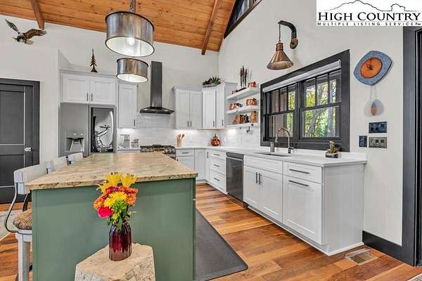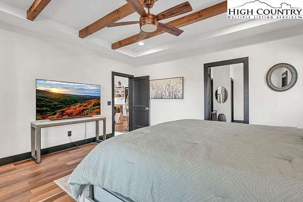 Welcome to 322 S Creek Drive -- a stunning custom-built mountain retreat completed in 2023. This remarkable property is being offered with two lots totaling 4 acres, providing both privacy and sweeping mountain views. This modern home is 5 minutes from the center of Boone, 10 minutes to Appalachian Ski Mountain and 15 minutes to downtown Blowing Rock or the Blue Ridge Parkway- yet when you are sitting on the private and peaceful deck, you feel miles from everything! Thoughtfully positioned to capture mountain vistas from almost every room of the house, the home is designed so that every bedroom opens to the outdoors, creating a seamless connection to its breathtaking surroundings. The main floor has a open concept kitchen, living and dining space with floor to ceiling rear windows to take in the amazing views. The gourmet kitchen showcases quartz counters, a leathered granite island, LG Signature appliances, and a 5-burner gas stove. The living room exudes mountain luxury with vaulted T&G ceilings, a striking stone fireplace with a custom burled ambrosia maple mantle, and seamless access to the deck -- even your furry family members have their own private door to enjoy the outdoors.