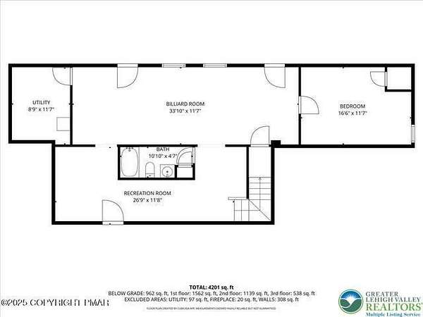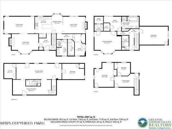 - Basement, Bathroom x 4, Bedroom x 4, Den, Dining Room, Family Room, Game Room, Office
