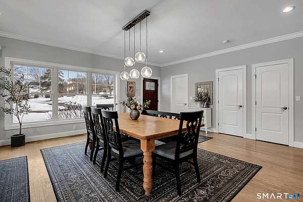 HIGHEST AND BEST BY 5p, TUESDAY, March 31. Built in 2019, this exceptional ranch offers 2,732 square feet of refined single-level living, complemented by approximately 883 square feet of newly finished lower-level space. Designed with both elegance and functionality in mind, the home features 4 bedrooms, 3.5 bathrooms, and a sophisticated open-concept layout ideal for modern living. The expansive living room is anchored by a striking fireplace and enhanced by recessed lighting and sliding glass doors that open to a private deck, creating an effortless indoor-outdoor connection. An oversized family room provides an additional space for entertaining or relaxation, while rich wood flooring throughout the home adds warmth and timeless appeal. Each bedroom is outfitted with ceiling fans for year-round comfort. A bright sunroom offers exceptional versatility and can easily serve as a home office, guest suite, or additional bedroom. Set on a serene and private 2.17-acre lot, this property delivers a rare combination of space, privacy, and tranquility. A two-car garage and move-in-ready condition complete this thoughtfully designed residence, offering luxurious living-all on one level.