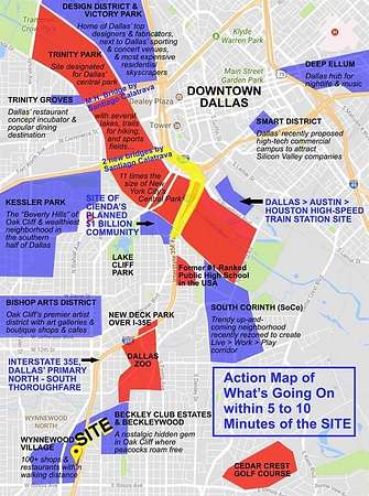 Flat residential lot ready to build on in established Beckleywood neighborhood next to Beckley Club Estates. Great skyline views & great visibility from I-35E for someone who wants to make an architectural statement or advertise their brand. Great location for Airbnb. Only 8 minutes from Downtown Dallas, Bishop Arts District, & Cedar Crest Golf Course. A creative 4-3-2 floor plan is included with sale. Design features a rentable ground level guest suite with private courtyard, 2nd floor primary suite with wraparound deck overlooking the skyline view, & penthouse-style 3rd floor living area with sweeping 360 degree views and wraparound deck overlooking the city. Enjoy nature & quaint nostalgia without compromising convenience thanks to 4 major thoroughfares within .25 miles (I-35E, Zang, Beckley, & Illinois). Enjoy the urban luxury of having over 100 shops & restaurants & grocery stores at Wynnewood Village within walking distance (3 blocks). And enjoy nature with Little Cedar Creek, streets shaded in mature tree canopies, & wild peacocks in Beckley Club. Property is platted & has city water, sewer, & utilities available. Note that property is larger than it looks since neighbors fence (currently being removed) encroaches on property up to 10' (see survey).