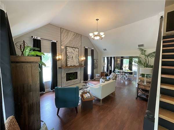 - Air Filtration, Breakfast Bar, Cathedral Ceilings, Ceiling Fans, Open Floorplan, Primary Downstairs, Split Bedrooms, Window Treatments
