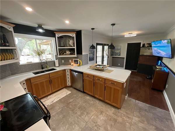 Want to get away...this is your chance to own your very own spot in Rockport/Fulton area... This private hideaway is one of a kind, 3 bedroom 2.5 bath with owner retreat down, a designer remodeled modern/with a farmhouse coastal flair that is private and secluded on estimated 3.5 acres in a surround oak tree haven. Custom designs throughout, 12 to 15 ft ceilings in areas, tons of natural light, a fur baby retreat with their own tv. Just fun living. You're three miles from the beach, Aransas Bay and Copano Bay. Just minutes from kayak launching and a public golf course Live Oak country club.. High elevation, not in a flood area. Bring the boat, and RV, no parking problems. Enjoy the art scene and the art walk. Also enjoy market days once a month, Oyster Fest and all the other events that go on here. You're just down the road from Port A and Corpus Christi 30-40 minutes away. Also, ask about the other acreage that can be bought if you want additional acreage, seller will owner finance on additional acres available or if you know someone that might want a piece of privacy next to you. These acres will be replatted and re-surveyed. The home is move in ready with electric, well, & septic. RV 30 amp. An additional 1.5 acres can be bought to add to the 3.5 acres. The additional acres are on the same plot of land available as well with this property or separate to buy. Texas best fishing at its finest!, the Arts downtown, great margaritas local food. This is your chance.