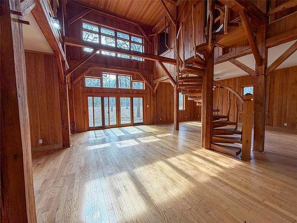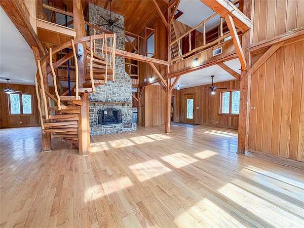 Custom home on 24 acres in highly sought after 7 Wires subdivision in Decatur! This 3700 plus square foot home gives you all the mountain feels, tucked away on its heavily wooded lot. The 2 story home features rock and stone facade, beautiful windows, and a large front porch on the first and second story. Inside the home on the first story, you find large gathering spaces, ornate woodwork throughout to maintain the cabin in the woods feel, generously sized eat in kitchen, double sided, stone fireplace and so much more! Venture up the spiral staircase and you have 3 bedrooms on one side of the home and down the hall to the other side you have the master suite with ensuite bathroom, access to the second story balcony, and a separate office space that is open air to the downstairs. In the office is a second set of stairs that takes you into bonus space! Here you have attic space for storage, and above that a lookout at the very top of the home. The property is nearly 25 acres of heavily wooded area with ample wildlife visiting regularly. The property does also have a 40x50 shop with 2 roll up doors, large enough for projects, collectible cars, or to just be a work shop. Close to the house there is a space to park a camper or RV with access to power at the pole and water nearby.