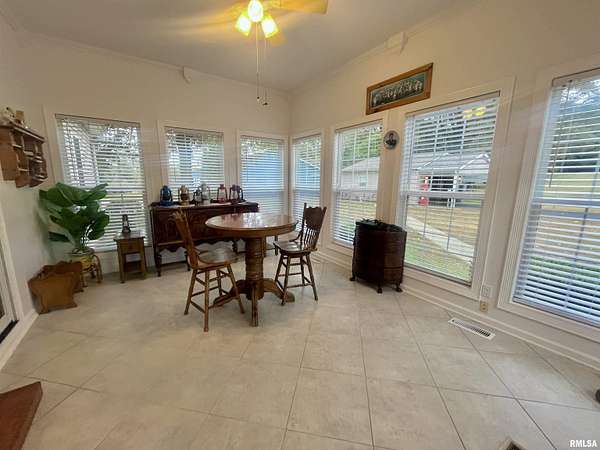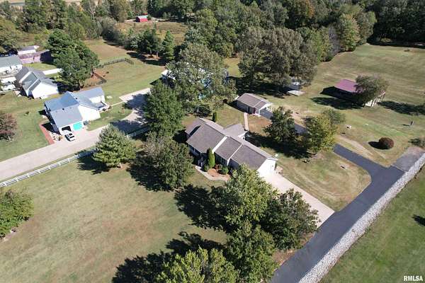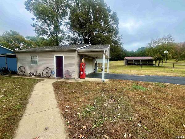 Well maintained three bedroom, two bath home on three acres, within minutes of Interstate 24, Metropolis and 1/2 mile from the golf course. Inside the home you'll find a vaulted ceiling and gas log fireplace in the living room, crown moldings throughout, a spacious kitchen with granite countertops, tray ceilings & large closets in each bedroom and a sunroom offering extra living space. The primary bedroom has an electric fireplace, two closets, including a walk-in, and a custom built walk-in shower. The attached 2 car garage floor is epoxy finished, the extra refrigerator & upright freezer are included and there is also a storage room. You'll appreciate the exterior details as much as the interior! A blacktop driveway runs to the home and to the 2 car detached garage. The detached garage has a propane wall heater & window a/c unit. There is a pet door that leads to a covered 9x15 concrete pad where a fence can be installed. There is an RV carport for your camper or motor home with a 220 amp hook up. A pole barn provides extra space for your lawn equipment or for a workshop and has a 16x23 attached room with carpet and french doors that lead to the wrap around porch. This room would be great for your hobby/craft room, home office or simply extra living space. The options are endless. With the endless list of amenities this property offers, this home offers a wonderful canvas for your next chapter! Call today to schedule your showing before you miss your opportunity.