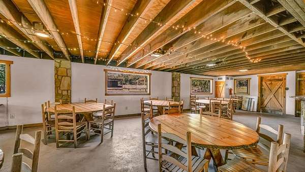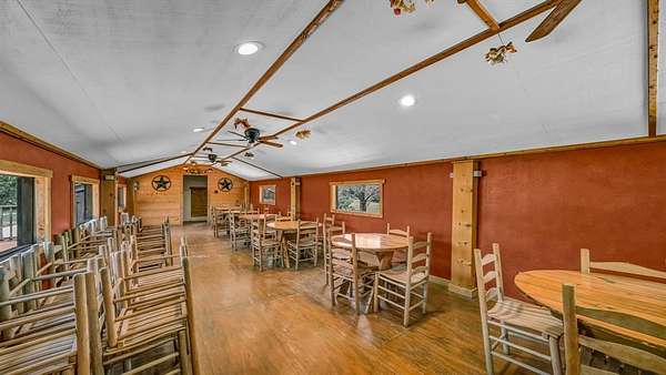 This versatile property has long served Parker County as a popular event center, conference center and wedding venue. It includes three primary buildings, a historic log cabin, and beautifully wooded acreage with several trails and garden areas.