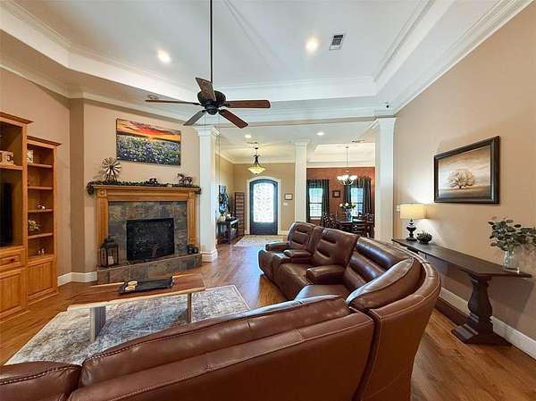 Welcome to an exceptional Texas luxury ranch estate in Ponderosa Valley, where refined design meets resort-style living on two beautifully landscaped acres. This stunning 4,402 sq ft residence offers 4 bedrooms, 3.5 bathrooms, multiple living areas, and an oversized 3-car garage plus golf cart garage and workshop.