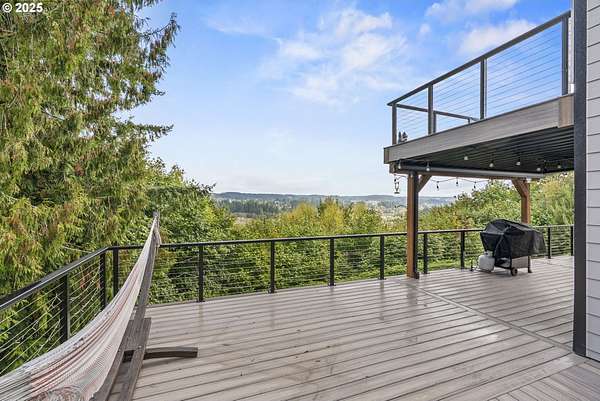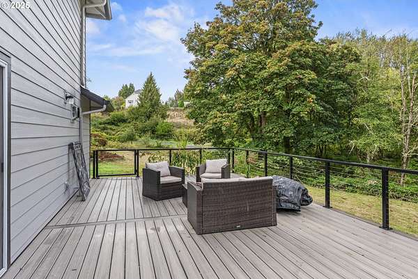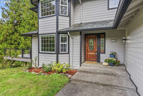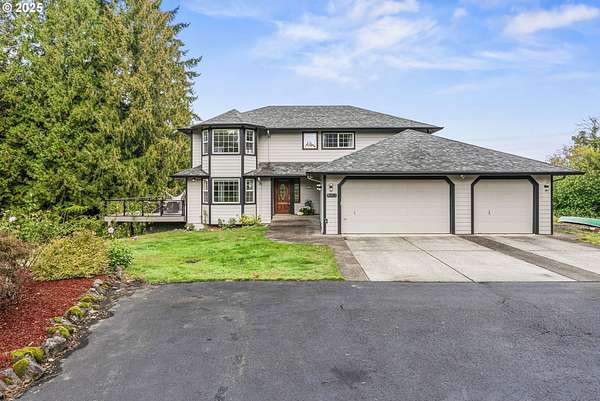 Perched on the rim of the Lewis River, this stunning 3-level Ridgefield home combines breathtaking views, versatile living spaces, and a rare 5-acre setting. From the decks and windows you can take in sweeping vistas of the river valley, the historic town of La Center below, Mt. St. Helens, and Mt. Adams. The surrounding wetlands attract diverse wildlife-bird lovers will especially enjoy watching the white Trumpeter Swans that winter in the lowlands.Designed for indoor-outdoor living, the home features over 1,500 sq. ft. of composite decking across 3 levels. The main wraparound deck extends from the dining and living areas, while the private upper deck connects directly to the spacious Primary Suite. A third covered deck below offers year-round outdoor enjoyment.Inside, the gourmet kitchen shines with granite counters, tiled flooring, stainless steel appliances, inlaid lighting, a huge picture window, and an eating bar. The living room with propane stove, large family room, and oversized bedrooms-each with walk-in closets-create abundant comfort. The luxurious Primary Suite boasts a jetted tub, dual sinks, walk-in shower, and private deck access.The lower level provides flexible multi-generational living with its own primary-style bedroom, full bath, exterior entrance, and covered deck. Exceptional storage is found throughout, plus a 3-car extra-deep garage with workbench.Property highlights include fruit trees, blueberry bushes, RV parking, a paved driveway, and two heat pumps for year-round efficiency. A private trail for Eagle Crest residents leads to the Lewis River for hiking, canoeing, birdwatching, swimming, and paddleboarding.Conveniently located near the new Ridgefield Costco, Ilani Casino, and I-5, this property offers privacy, nature, and accessibility-an extraordinary combination in a classic design home.