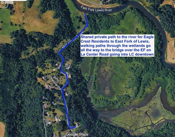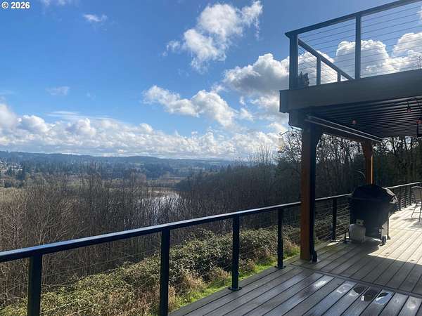 Perched on a private bluff in the desirable Eagle Crest Drive estate area, this exceptional 3,744 sq ft, 3-level home offers breathtaking, unobstructed views of the Lewis River, protected wetlands, and surrounding wildlife habitat. Enjoy panoramic scenery that includes Mt. St. Helens and Mt. Adams-with endless territorial views on clear days.Designed for both everyday living and entertaining, the home features over 1,500 sq ft of composite decking across three custom decks, including a wraparound main-level deck-perfect for hosting or simply soaking in the peaceful setting. From sunrise to sunset-and even seasonal fireworks displays-the views are truly unforgettable.Situated on 5 private acres with lush green lawns, fruit trees, and blueberry bushes, this property offers space, serenity, and flexibility. No HOA and located on a private road, there's ample room for RV/boat parking and potential for an ADU.The lower level is ideal for generational living, complete with its own exterior entrance, private deck,2 bedrooms living room & full bath suite. The main level features a gourmet kitchen with granite countertops, stainless steel appliances, and a coved ceiling, opening to a family room with direct access to the deck. A formal dining area with dual sliding glass doors creates seamless indoor-outdoor entertaining, while the living room showcases a cozy propane stove and bay window.Upstairs, the primary suite is a true retreat ,with a private balcony, jetted tub, walk-in shower, dual sinks, and walk-in closet.Additional highlights include two heat pumps for efficient heating and cooling, a main-level laundry room with front-loading washer and dryer, abundant storage, and an oversized 3-car deep garage with workbench.Residents of Eagle Crest enjoy access to a private trail leading down to the Lewis River,perfect for hiking, canoeing, paddleboarding, swimming, ,birdwatching.Ideally located , minutes to I-5, Ridgefield Costco ,20 min to PDX Bridge ,OPEN HOUSE 12/28 12-2