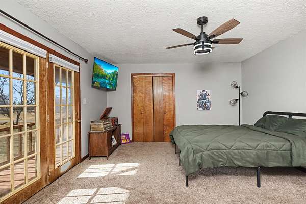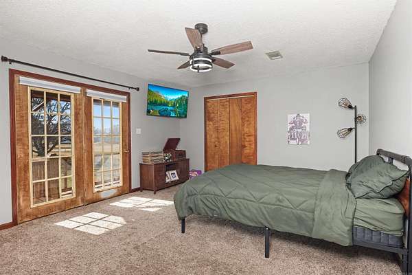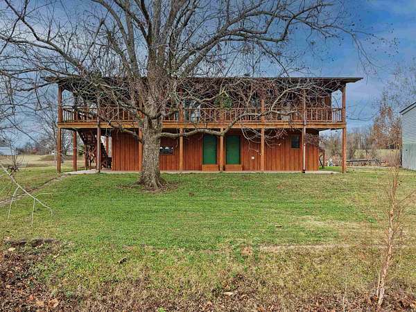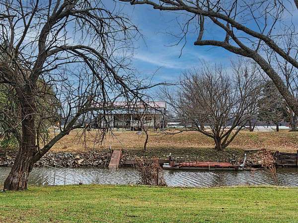 Perched along a scenic canal of the Arkansas River, this beautifully updated 4-bedroom, 3-bath home offers 2,072 square feet of elevated waterfront living on two parcels totaling approximately 1.5 acres with 136 feet of water frontage. Recent upgrades include a brand-new roof, new kitchen countertops, sink, and backsplash, fresh interior paint, all new interior fans and lighting, and an AC unit serviced this year. The two-story layout features main living upstairs to maximize privacy and water views, opening to a wrap-around porch ideal for entertaining or relaxing along the canal. Complete with a 2-car garage and two shop buildings, this property delivers a rare combination of updates, space, and versatile waterfront living.