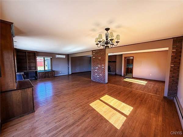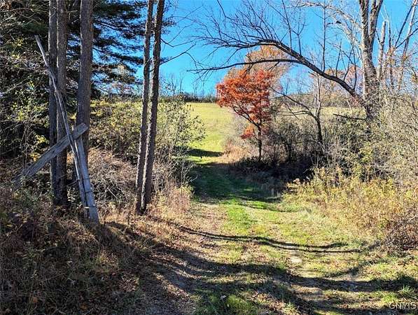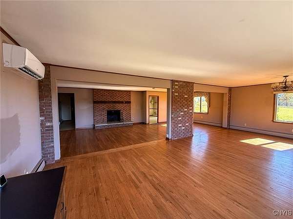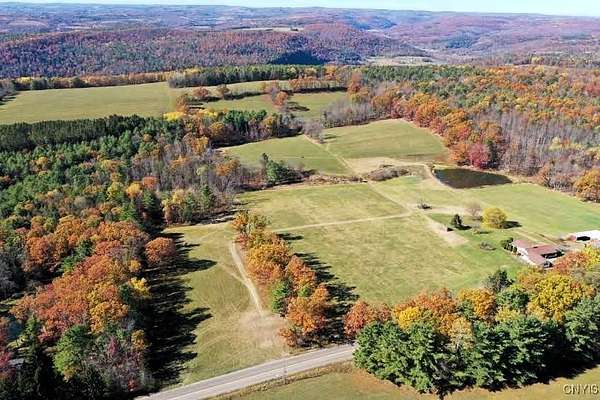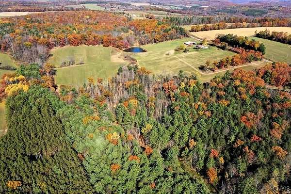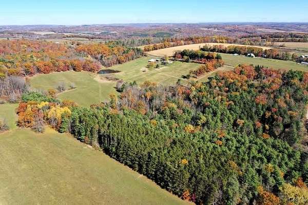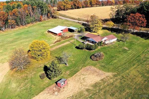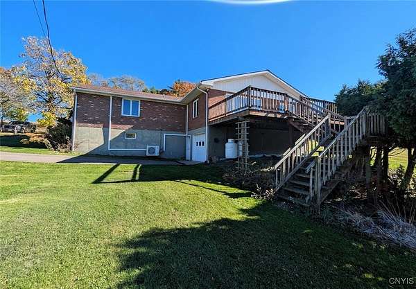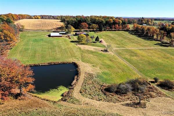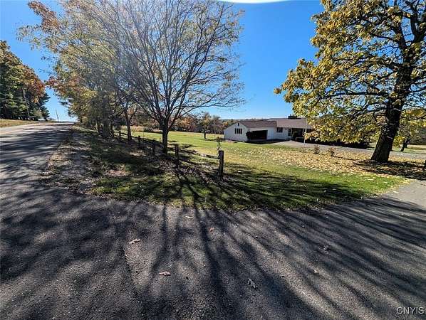 This home sits on 93 acres and includes a barn, farm fields and a pond located in Addison NY. Set in the hills of southern Steuben County, this well-kept, ranch-style brick home sits on a picturesque 93 acres with an ideal mix of open ground and woods. A blacktop driveway just off the paved road leads to this spacious one-story home built on a poured concrete foundation. Across the drive, a versatile pole barn with concrete floors and electric has been used for livestock. From the expansive back deck, take in the sweeping views of the property, including a beautiful spring-fed pond and approximately 55 acres of farm fields. The balance of the acreage is mixed woodlands with stands of red and white pine, and a small year-round creek meanders through the center of the land. Enter the main level of the home from the attached garage into a convenient mudroom with laundry hook-ups and a deep sink. The kitchen offers abundant cabinet storage and opens to a dedicated dining area. Gather in the oversized living room featuring a charming brick fireplace, hardwood floors, built-in shelving, and multiple windows that flood the space with natural light. The main floor includes three bedrooms and two full baths, highlighted by a primary bedroom with its own private bath. Recent updates include a newer roof and two recently installed heating and air-conditioning units for year-round comfort. Stairs lead to a full, walk-out basement providing exceptional space: a second attached garage bay, a finished room that could serve as a fourth bedroom or office, a large open area perfect for a workshop, and a separate room currently used as a root cellar. Outside, enjoy the privacy of gently rolling terrain with the quintessential blend of pond, creek, fields, and woods, tailor-made for a small farm, hobby operation, and quality hunting with abundant wildlife. The seller will provide an existing survey. Delayed negotiations until November 14, 2025.