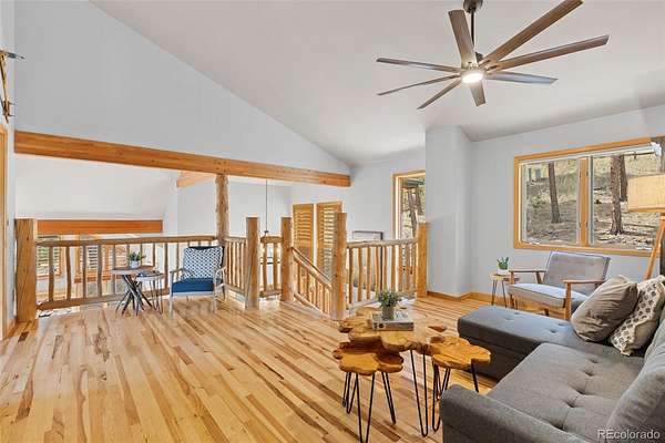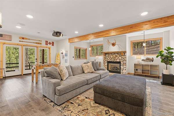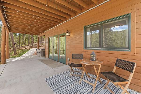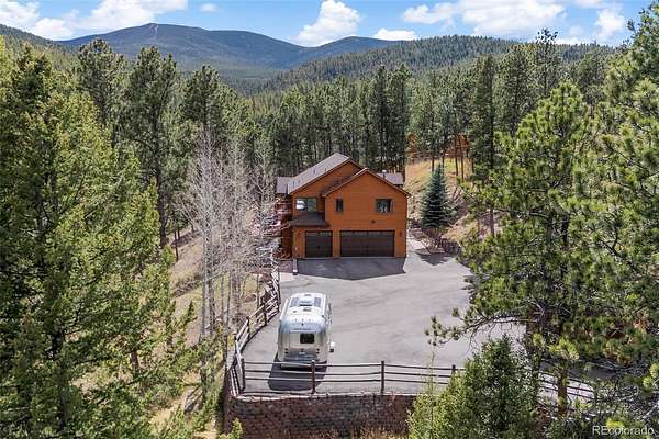 Thoughtfully upgraded for peace of mind and efficiency this home has a whole-home Generac backup automatic generator, Defensible Space mitigation (May 2024, certified to 200’ for insurance), new furnaces (2023), A/C (2023), roof (2019), garage doors (2024), driveway repaving (2024), Tesla EV charger, re-screened windows (2024) and full interior repaint (2024). You’ll feel the peace and privacy this property offers sitting on a quiet and private 2.48-acre cul-de-sac lot in the highly sought-after Aspen Meadows neighborhood. The kitchen has been fully reimagined in 2024 with quartz countertops, Bosch appliances, refaced cabinetry, brick backsplash, and a Titan beverage cooler, perfect for entertaining or quiet nights at home. A state-of-the-art theater room, complete with a 110" screen and Denon AV system (2025), creates the ultimate movie-night experience. Find exceptional flexibility on the lower level with a full in-law suite, kitchenette, bedroom, bath, and walk-out access to a covered patio and hot tub, and a fully wheelchair-accessible via ramp and step-free entry, ideal for multigenerational living or guests. Glide up the mountain contemporary staircase to an airy loft that overlooks soaring vaulted ceilings, expansive windows, and the open-concept main living space. The beautifully refreshed primary suite features a private balcony, updated spa-inspired bath with in-floor radiant heat, walk-in shower, dual vanities, and a soaking tub perfectly positioned to take in the views. Soak in the Strong Spas hot tub (2023) as snow falls through the trees, or relax on the expansive trex deck with incredible mountain views in the distance. Just minutes from Evergreen and Conifer, you’re close to everyday conveniences while still feeling completely removed from it all. RV parking plus space for 8 vehicles and LED lighting throughout. Maxwell Falls trailhead is 1.5 miles away. Evergreen and Conifer are both minutes from your door for dining, shopping, and schools.